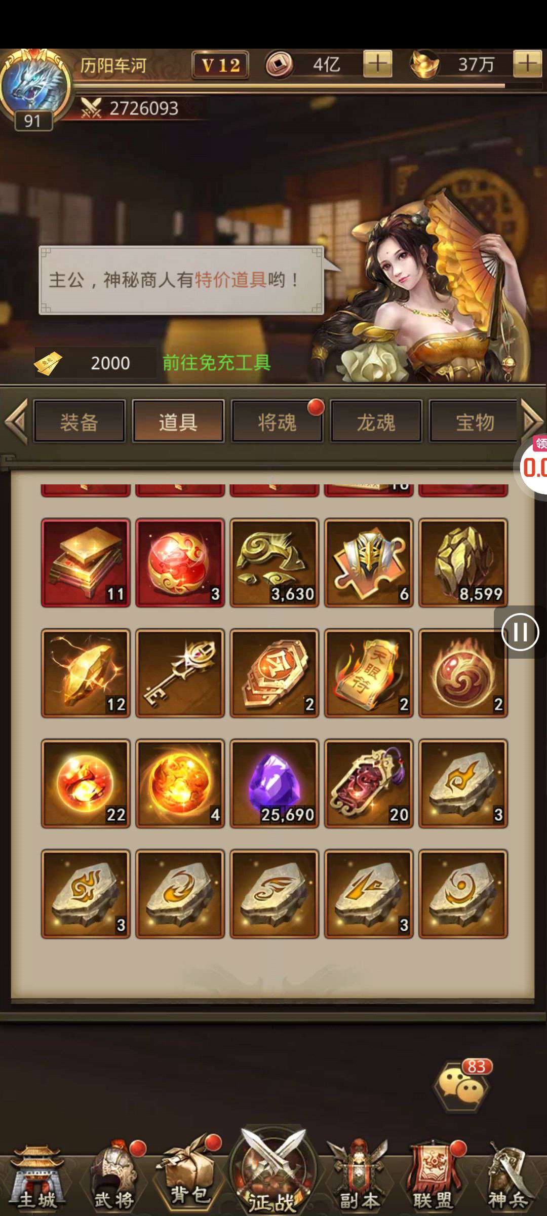 夺宝券*1、比武令*1、5星随机将魂*10(每个账号限领一次)