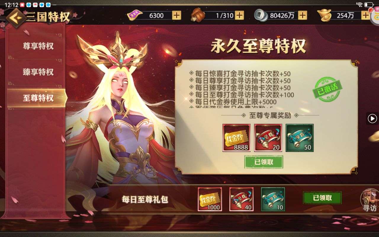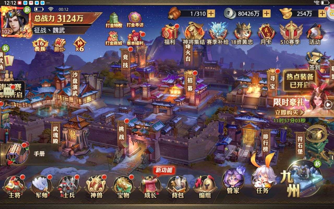 夺宝券*1、比武令*1、5星随机将魂*10(每个账号限领一次)
