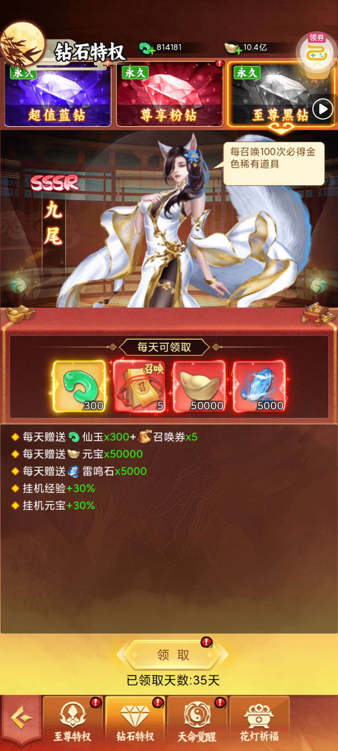 夺宝券*1、比武令*1、5星随机将魂*10(每个账号限领一次)