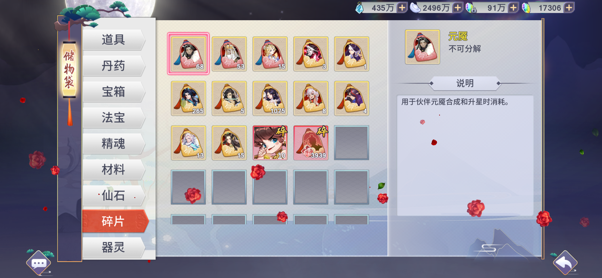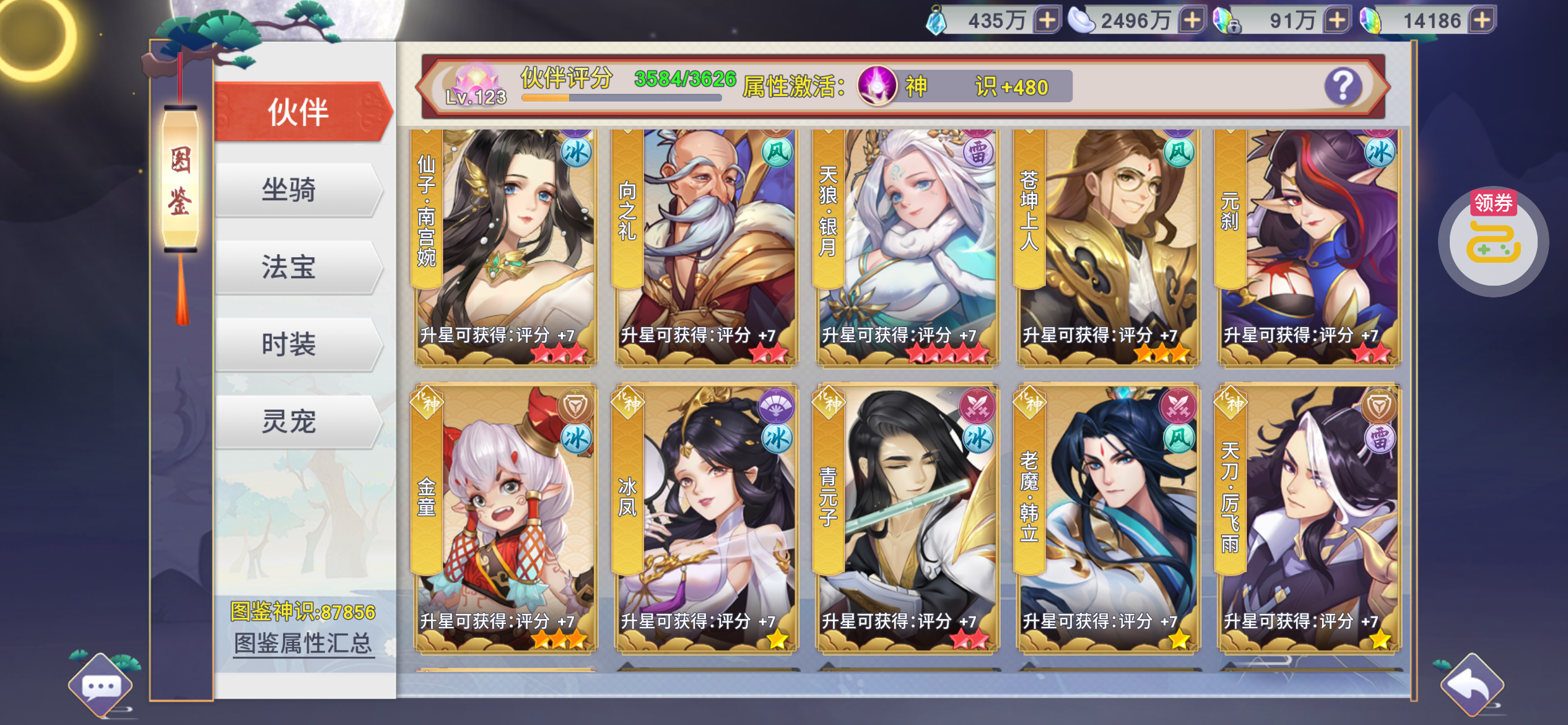 没时间玩了,图鉴齐全另外充值买了元魇(限定还有5-600个,能升到红1、2