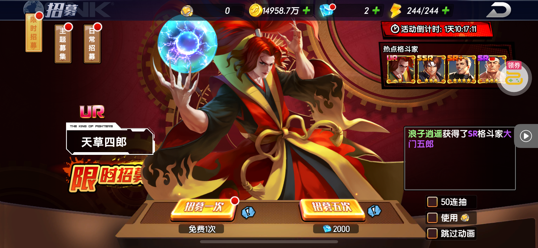 强化药剂*200、钻石招募币*20、金币*50W(每个账号限领一次)