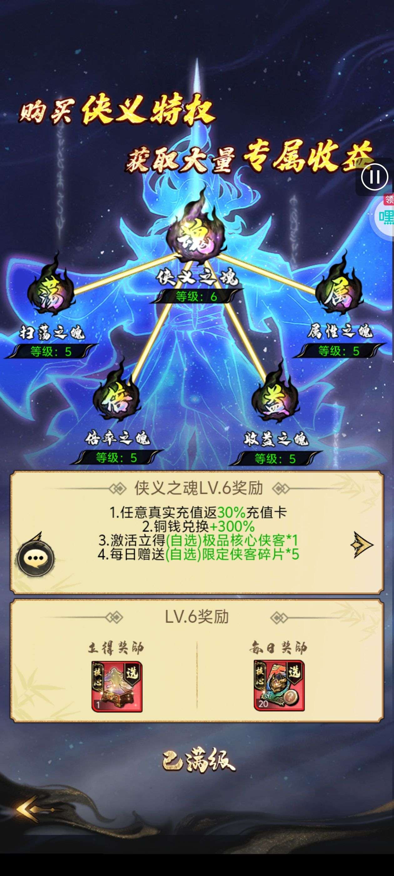 30张648真充卡豪礼、侠客灵丹*10、侠客神丹*10、侠客金丹*1、专属挑战令*1(每个账号限领一次)