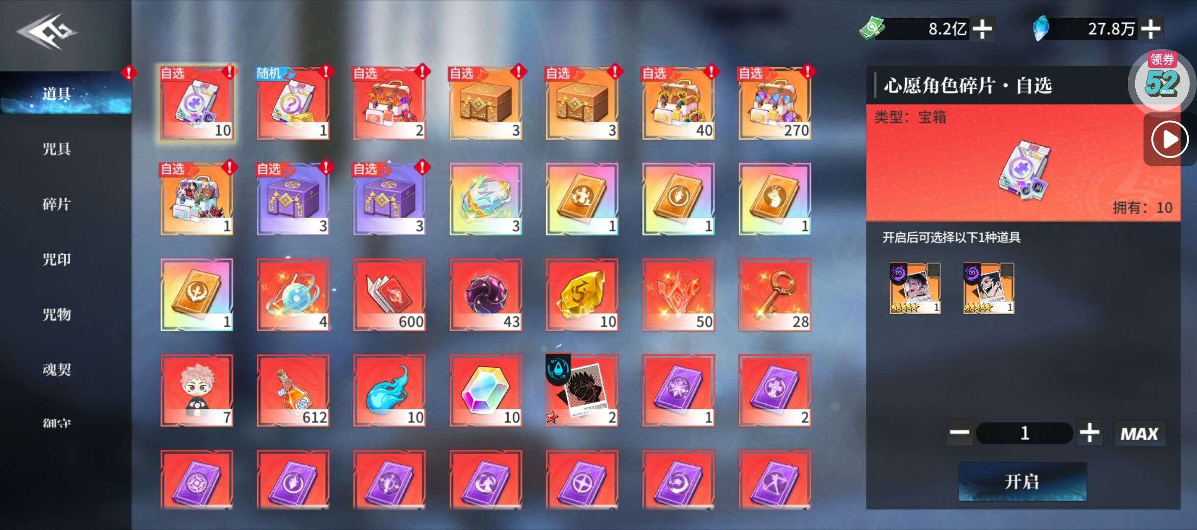 夺宝券*1、比武令*1、5星随机将魂*10(每个账号限领一次)