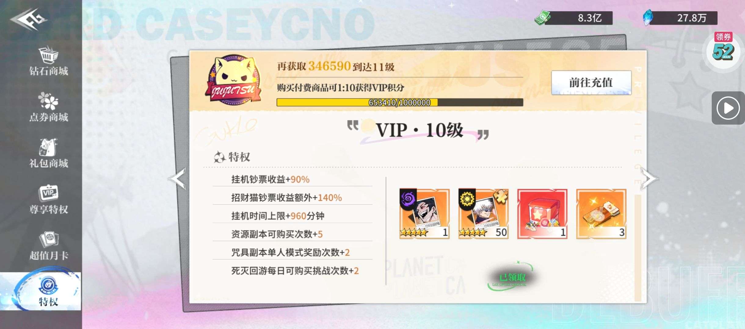强化药剂*200、钻石招募币*20、金币*50W(每个账号限领一次)