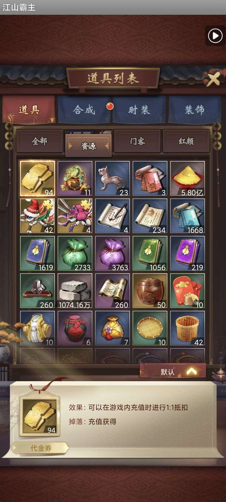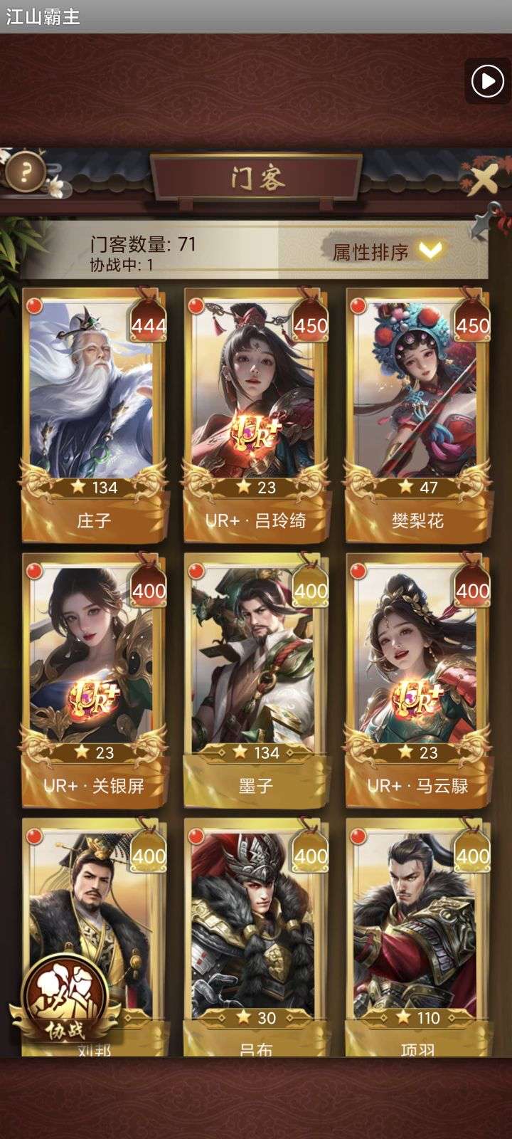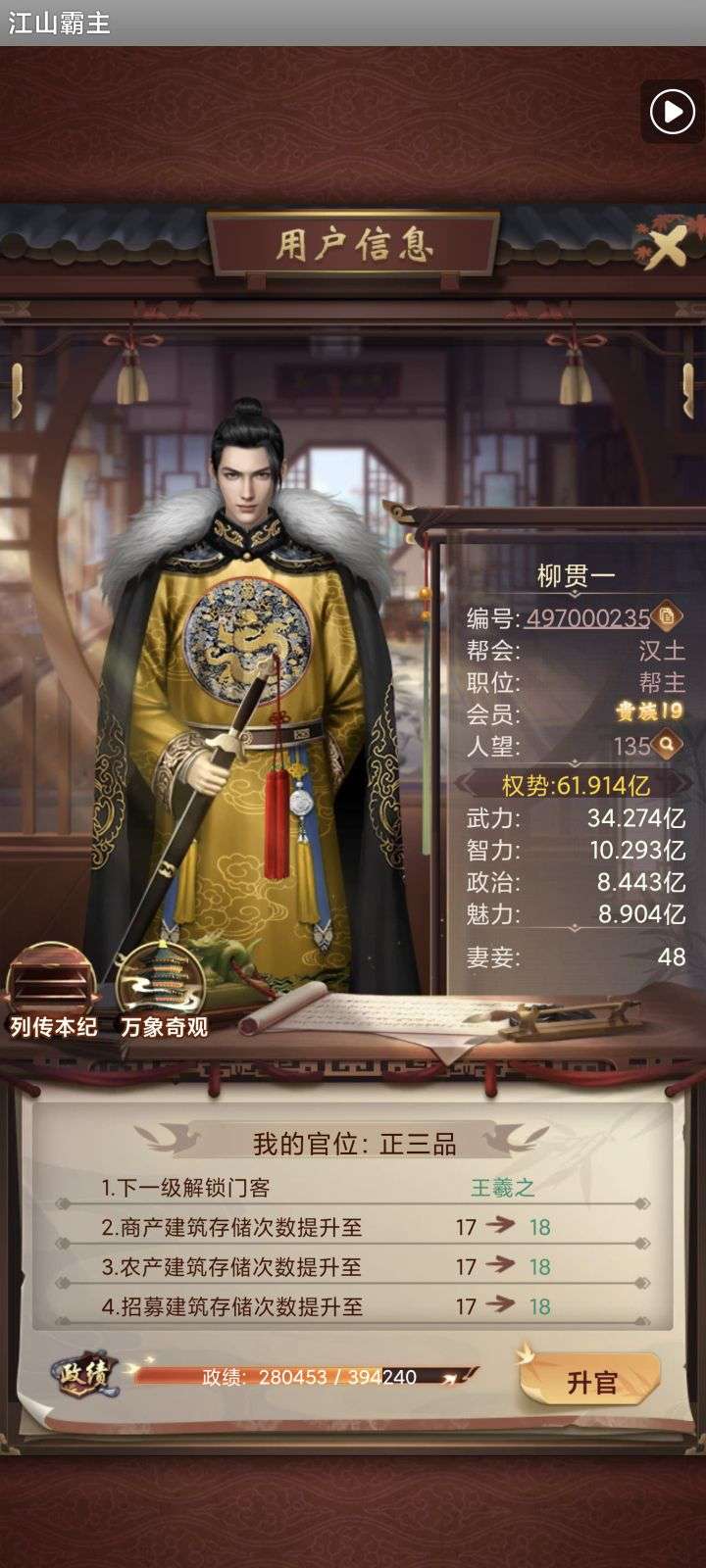 135亿战力。天神将+up将,主妃22w,VIP23。黄金阵容,资源库看图