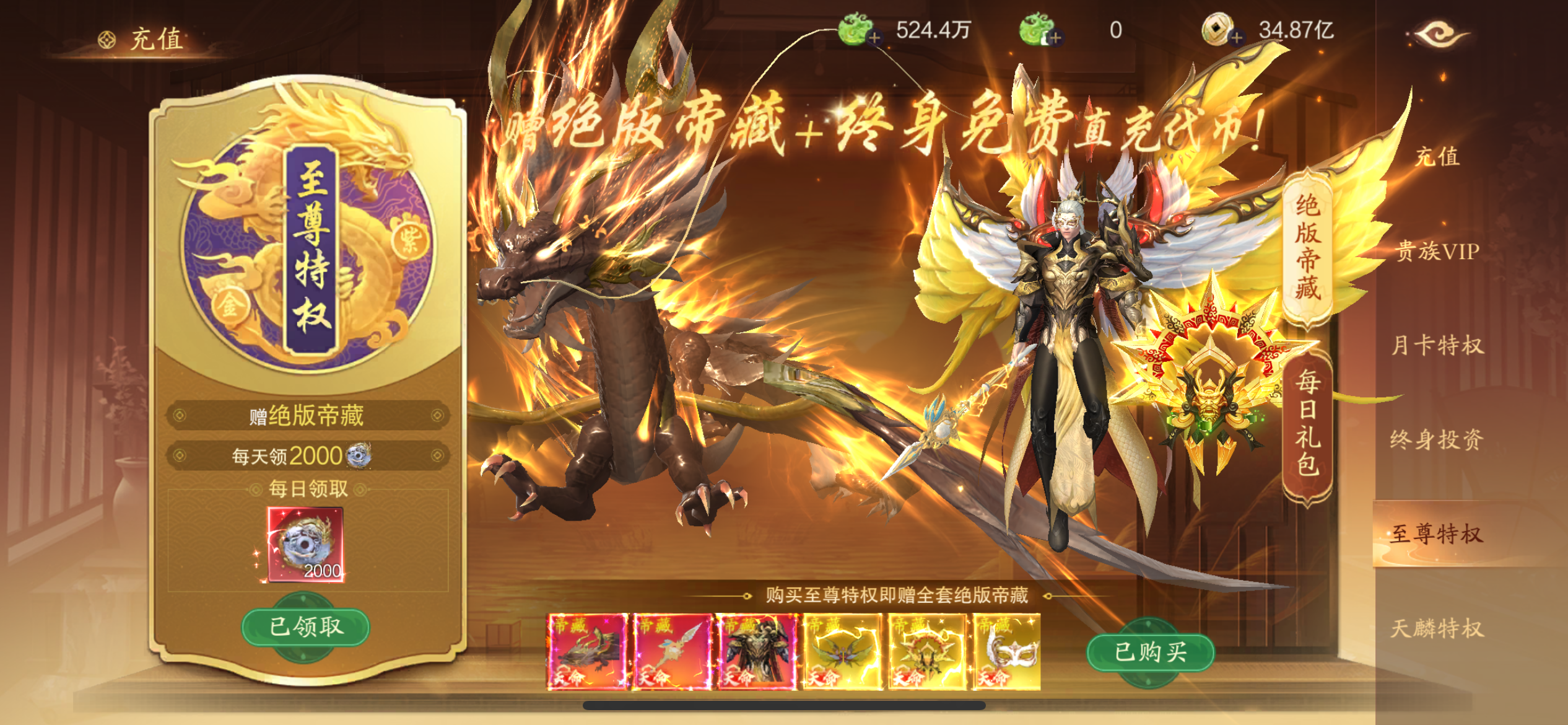 巅峰662级,整套碧霄龙君,整套万物复苏,四圣兽