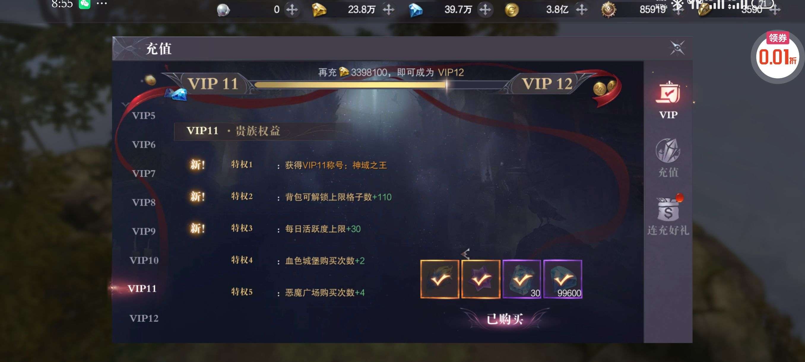 该角色累计充值3859.1元。 购买须知: 1.购买后支持回收或再次出售,不支持转区。 2.回收金额仅计算该小号购买后的充值金额,不计算购买前原有充值金额。 3.再次出售需等待购买72小时后,累充显示该小号总充值金额。