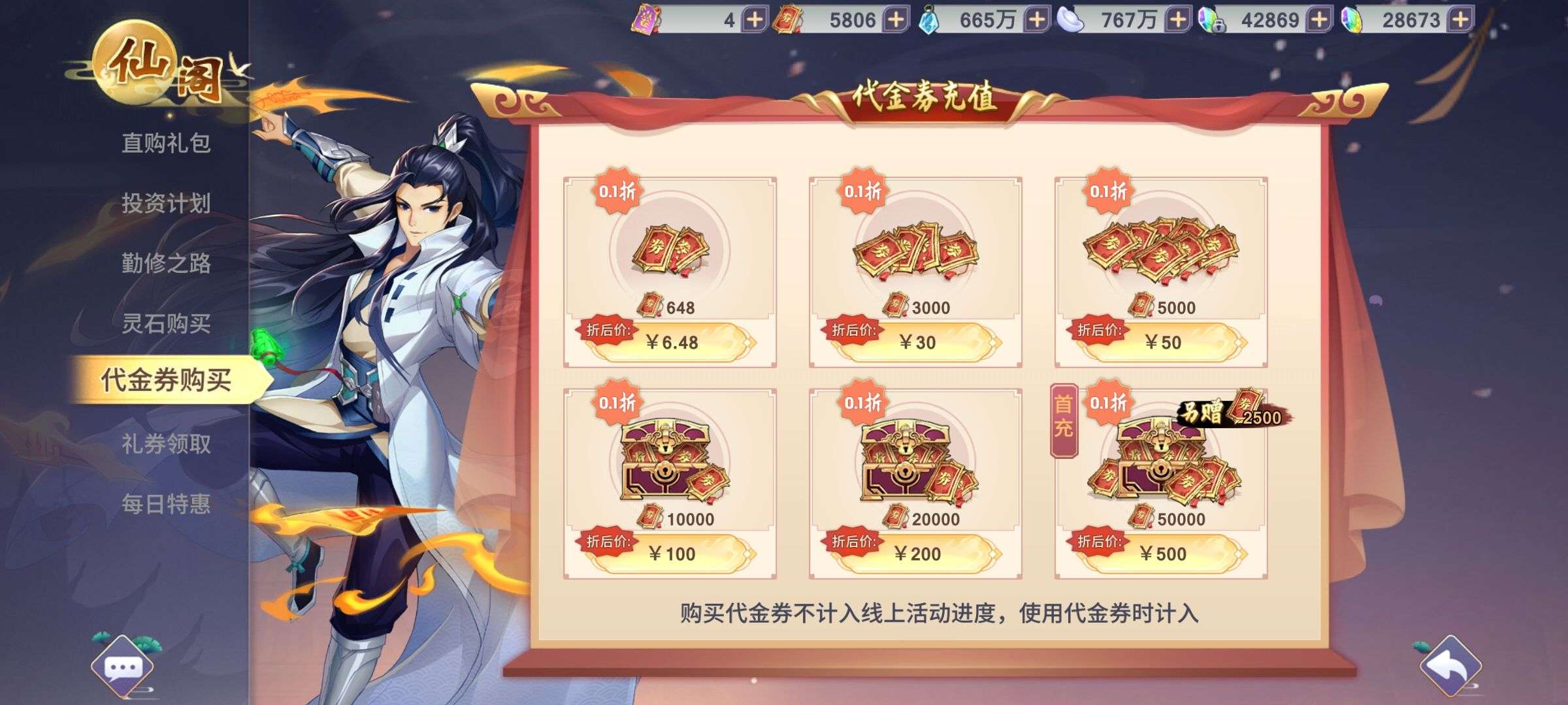 30张648真充卡豪礼、侠客灵丹*10、侠客神丹*10、侠客金丹*1、专属挑战令*1(每个账号限领一次)