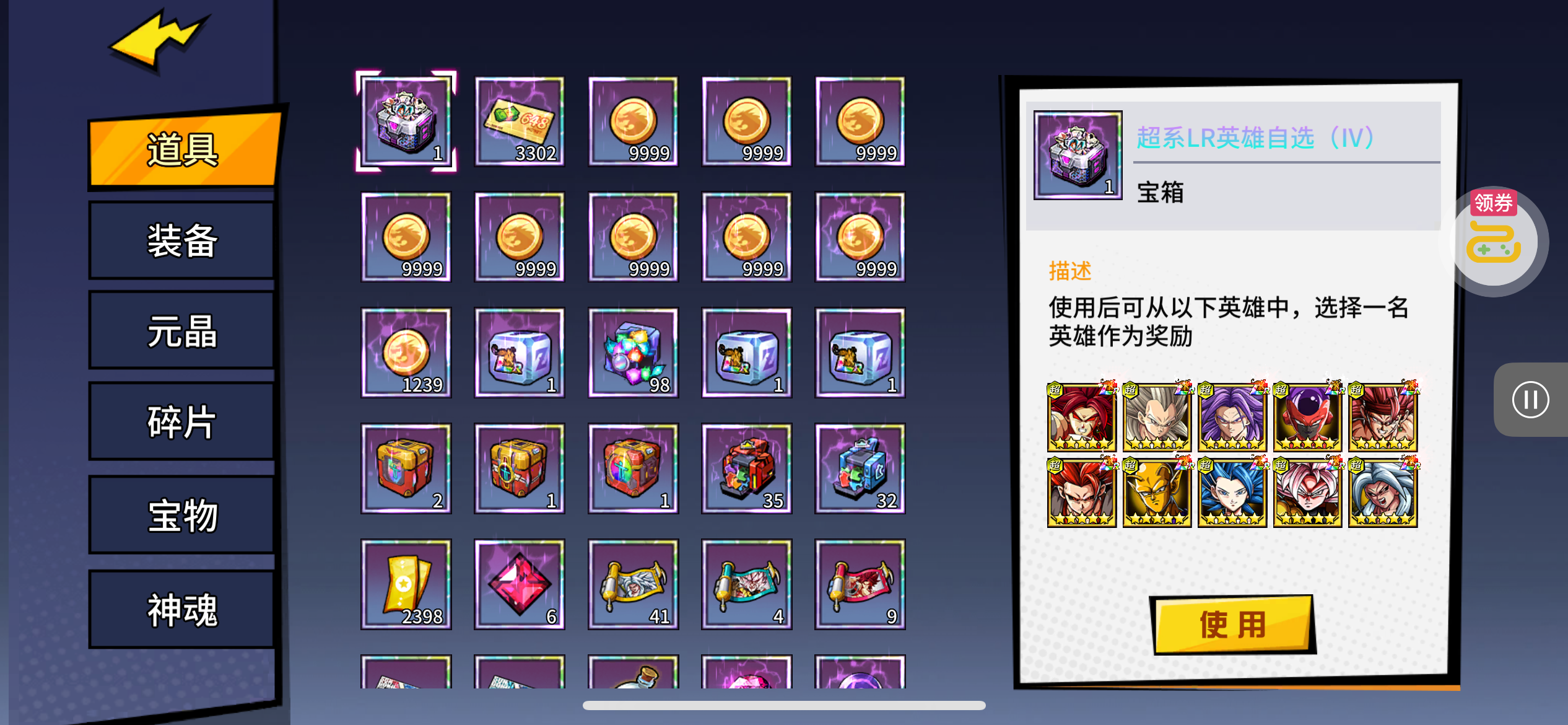 夺宝券*1、比武令*1、5星随机将魂*10(每个账号限领一次)