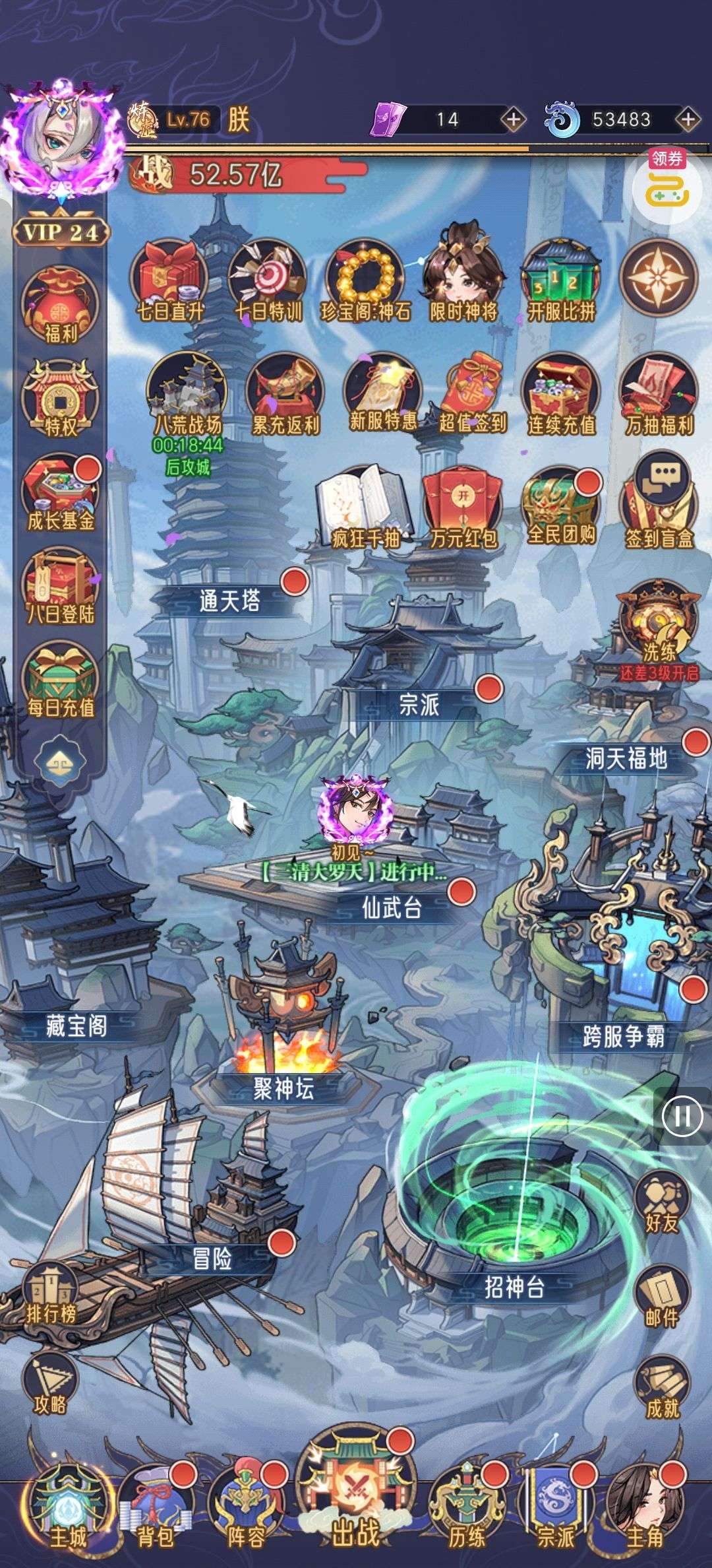 夺宝券*1、比武令*1、5星随机将魂*10(每个账号限领一次)