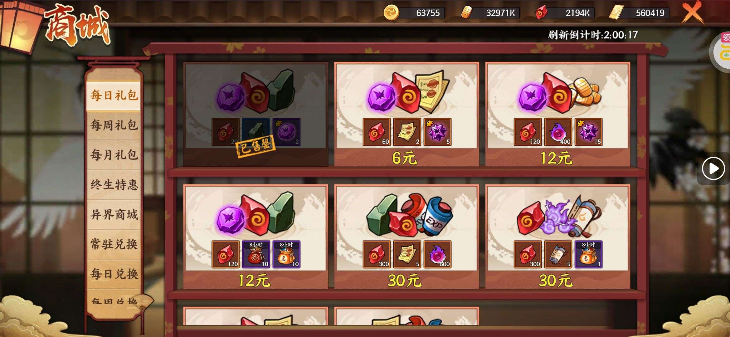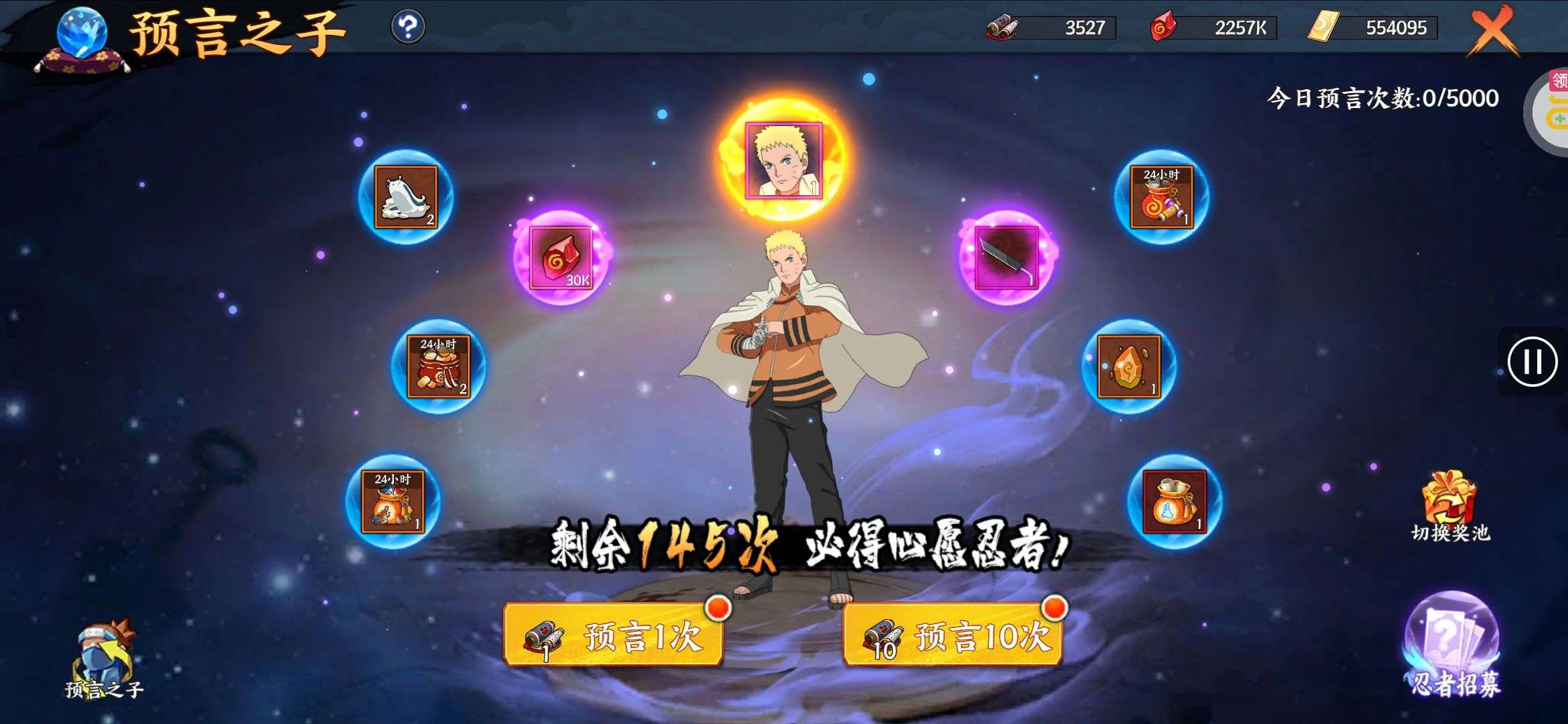 五阵营输出自选包*1、豪华材料自选礼包*2、高级忍法帖*20(每个账号限领一次)