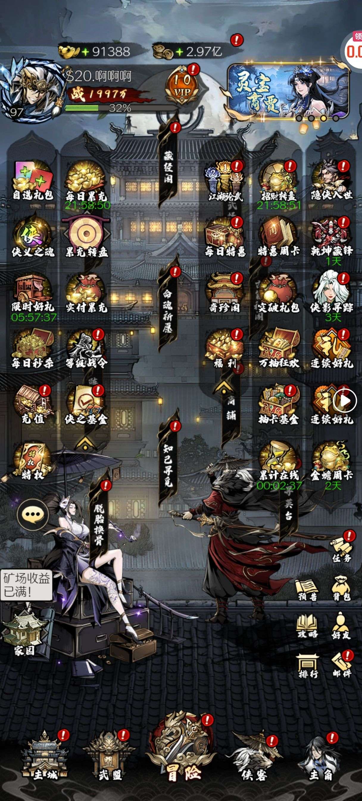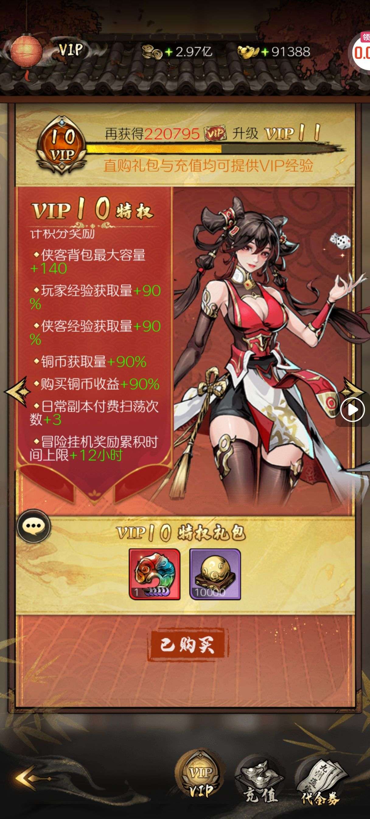30张648真充卡豪礼、侠客灵丹*10、侠客神丹*10、侠客金丹*1、专属挑战令*1(每个账号限领一次)