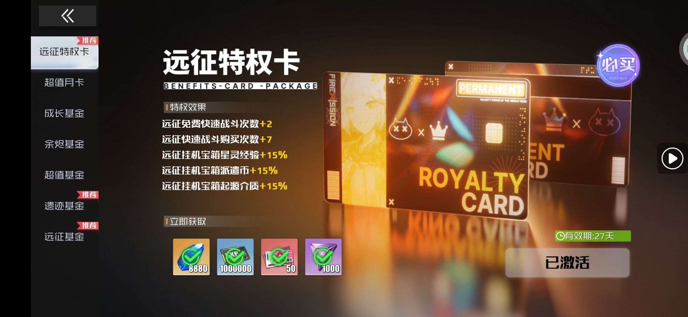 30张648真充卡豪礼、侠客灵丹*10、侠客神丹*10、侠客金丹*1、专属挑战令*1(每个账号限领一次)