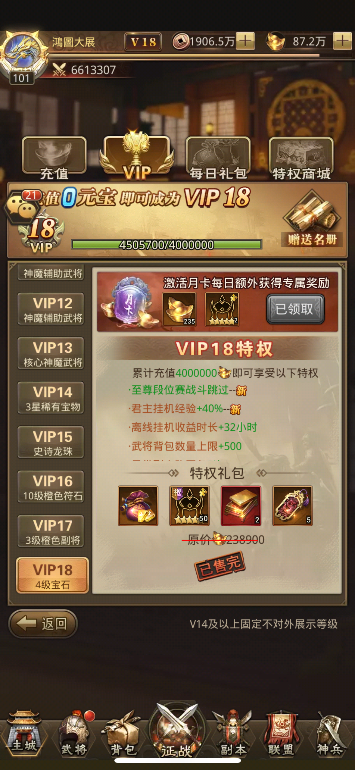 V18 所有特權開到最頂 還有很多元寶