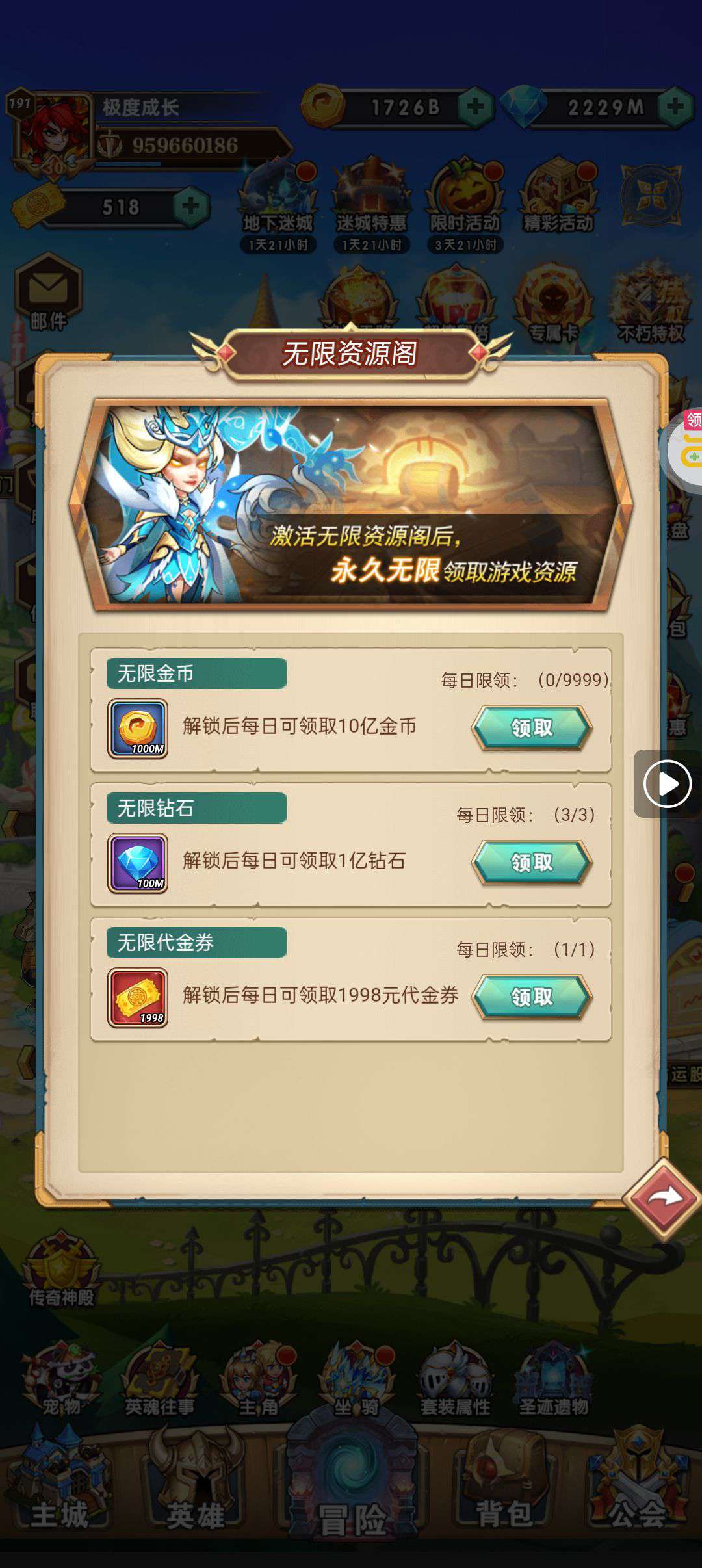 强化药剂*200、钻石招募币*20、金币*50W(每个账号限领一次)