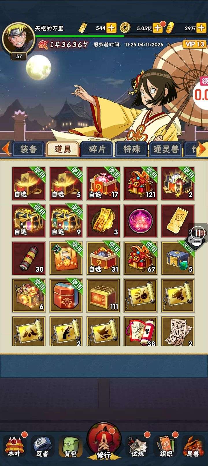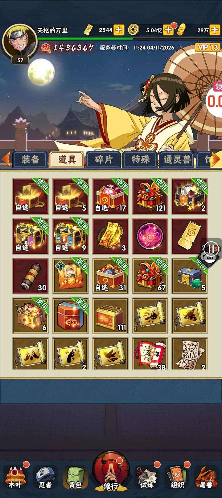五阵营输出自选包*1、豪华材料自选礼包*2、高级忍法帖*20(每个账号限领一次)