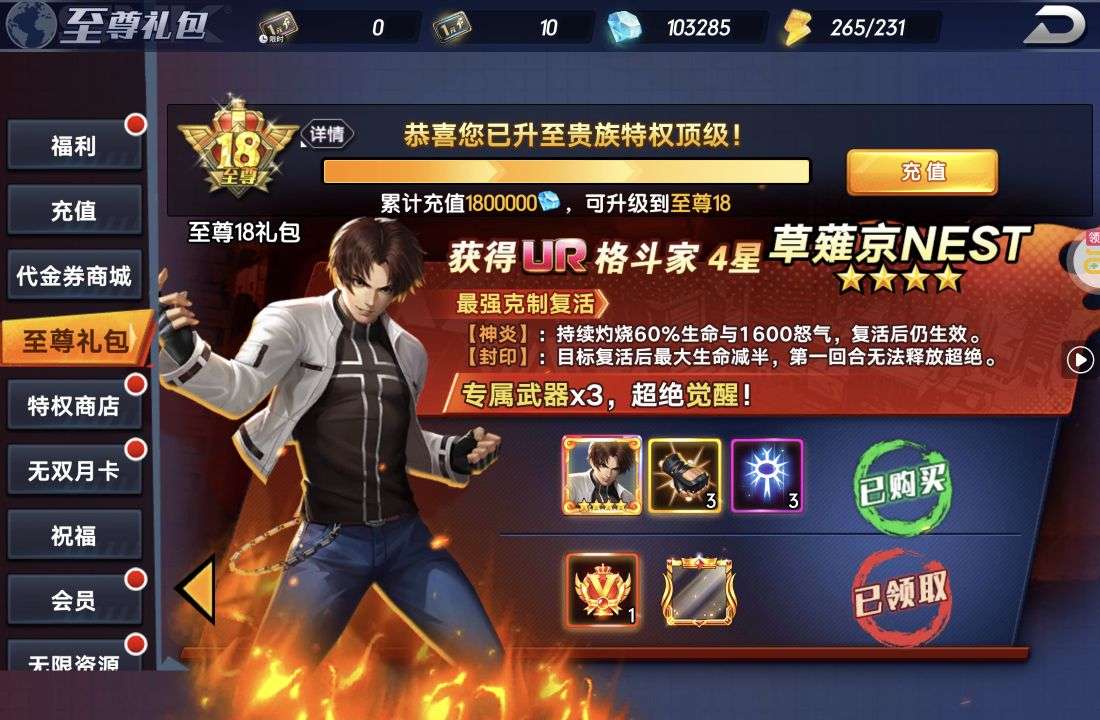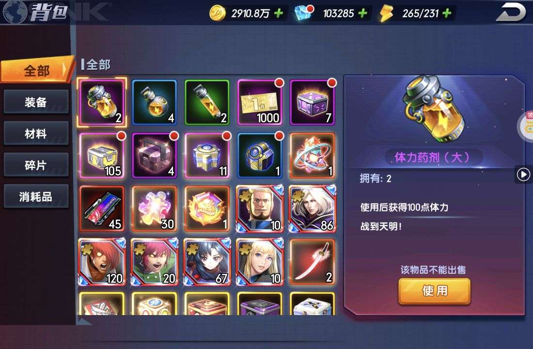 不玩了,八神庵有锐变,钻石抽还有一万多次。卷还有很多。包里碎片无数,材料很多。成品号上手就能玩。便宜出。图片真实有效