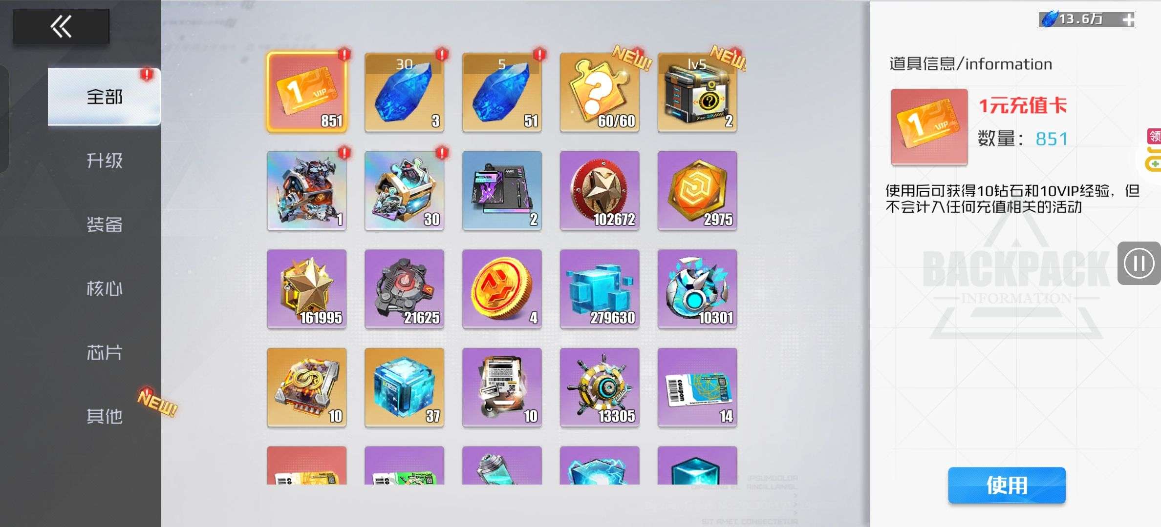 芯片熔炼石*1、离子探针*50、净化金属*50(每个账号限领一次)