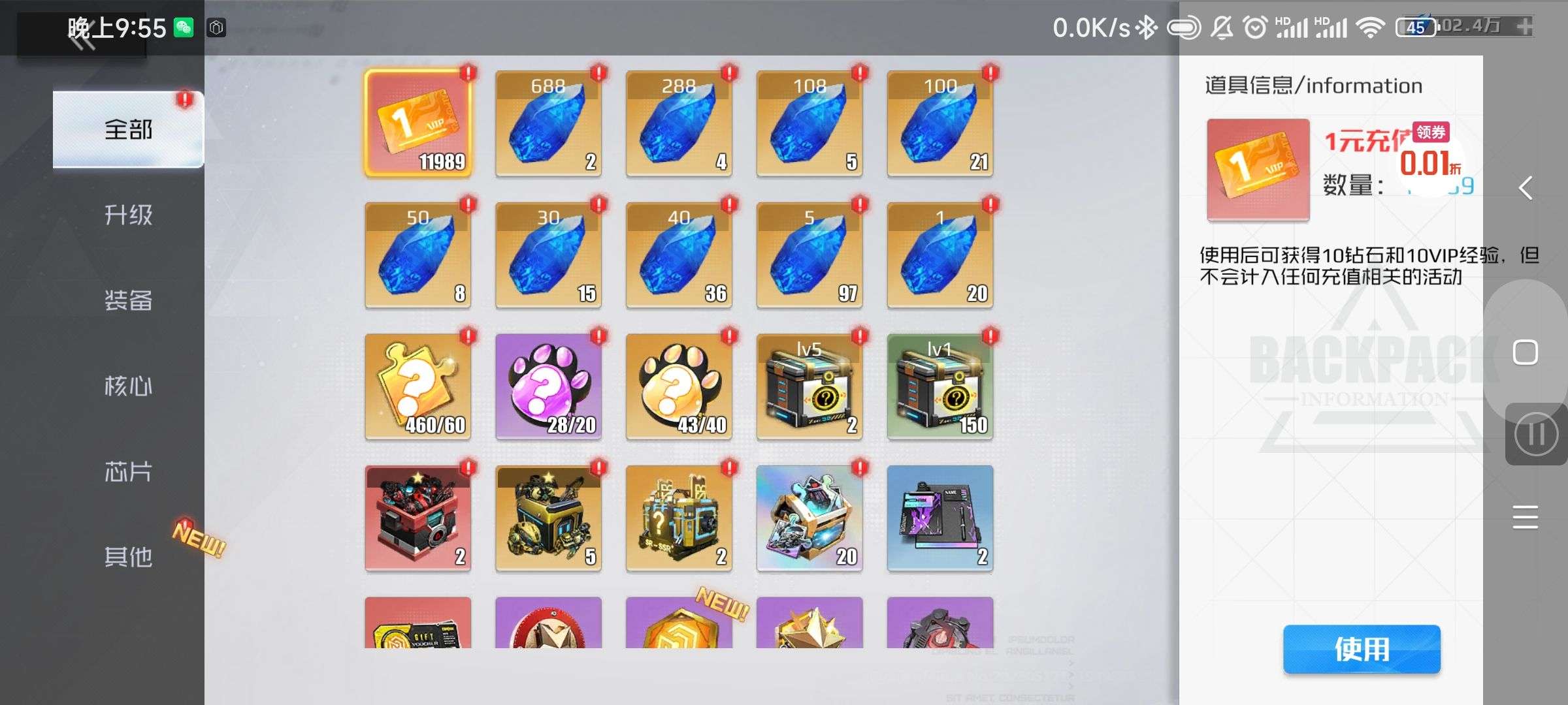 芯片熔炼石*1、离子探针*50、净化金属*50(每个账号限领一次)