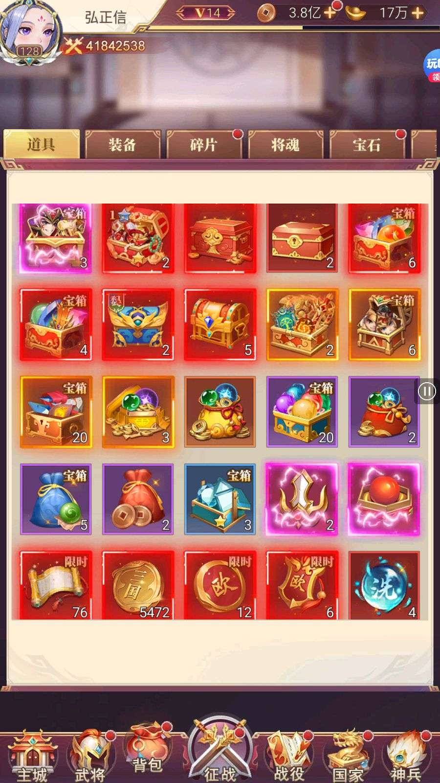 夺宝券*1、比武令*1、5星随机将魂*10(每个账号限领一次)