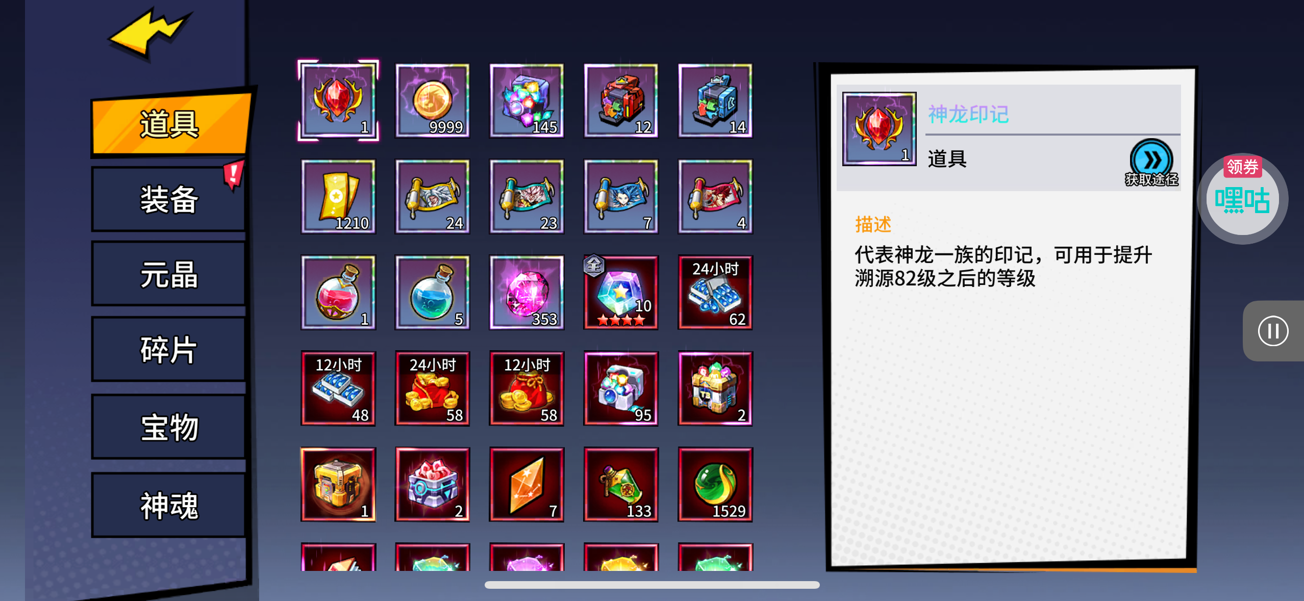 夺宝券*1、比武令*1、5星随机将魂*10(每个账号限领一次)
