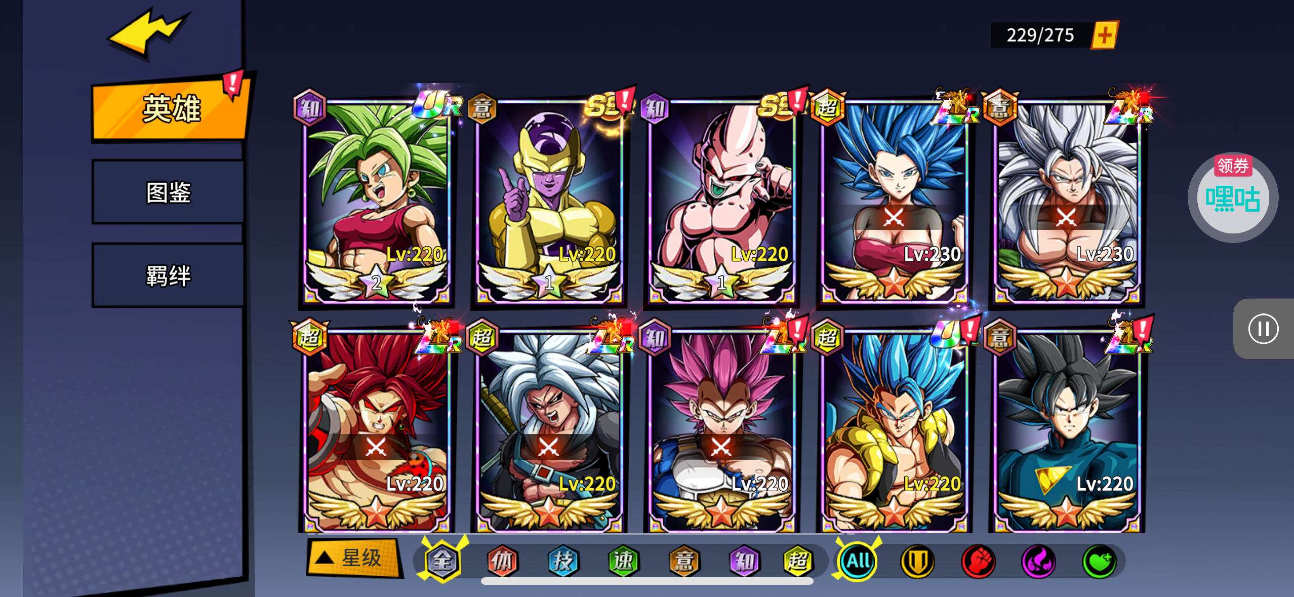 没时间玩了,黑金弗利萨,超布罗利,人物都有,还有一些卷