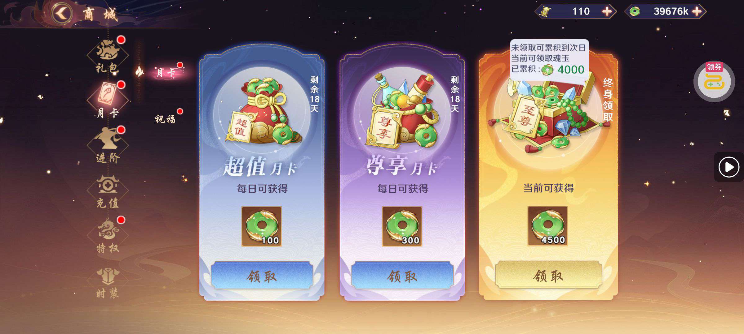 30张648真充卡豪礼、侠客灵丹*10、侠客神丹*10、侠客金丹*1、专属挑战令*1(每个账号限领一次)
