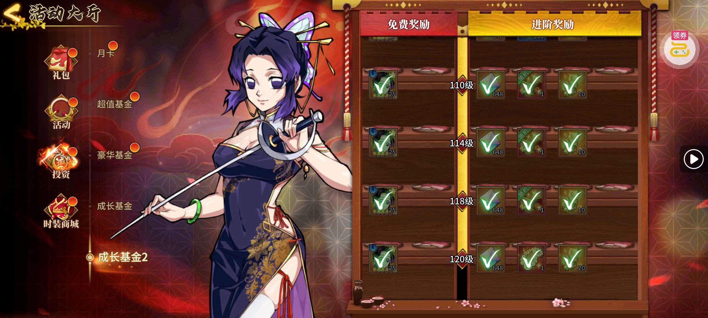 五阵营输出自选包*1、豪华材料自选礼包*2、高级忍法帖*20(每个账号限领一次)