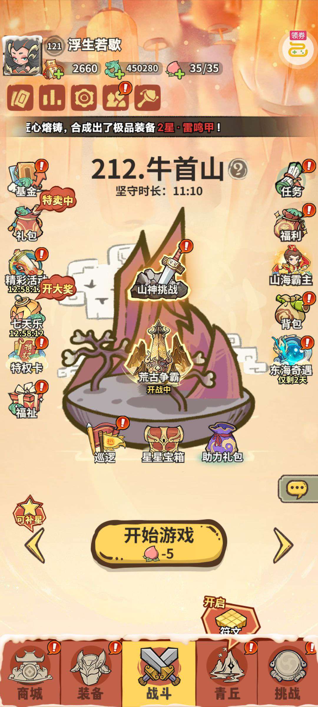 夺宝券*1、比武令*1、5星随机将魂*10(每个账号限领一次)