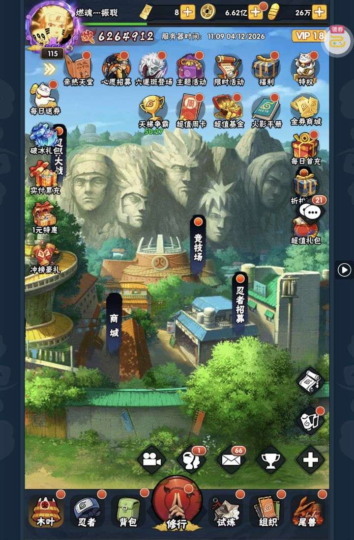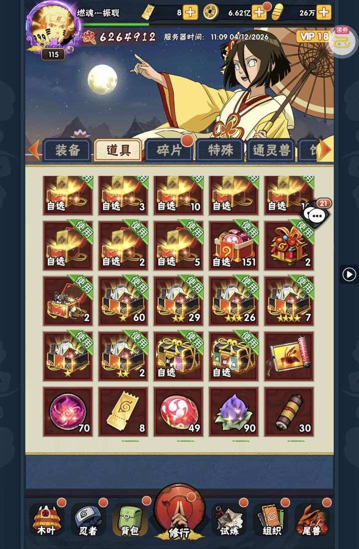 五阵营输出自选包*1、豪华材料自选礼包*2、高级忍法帖*20(每个账号限领一次)