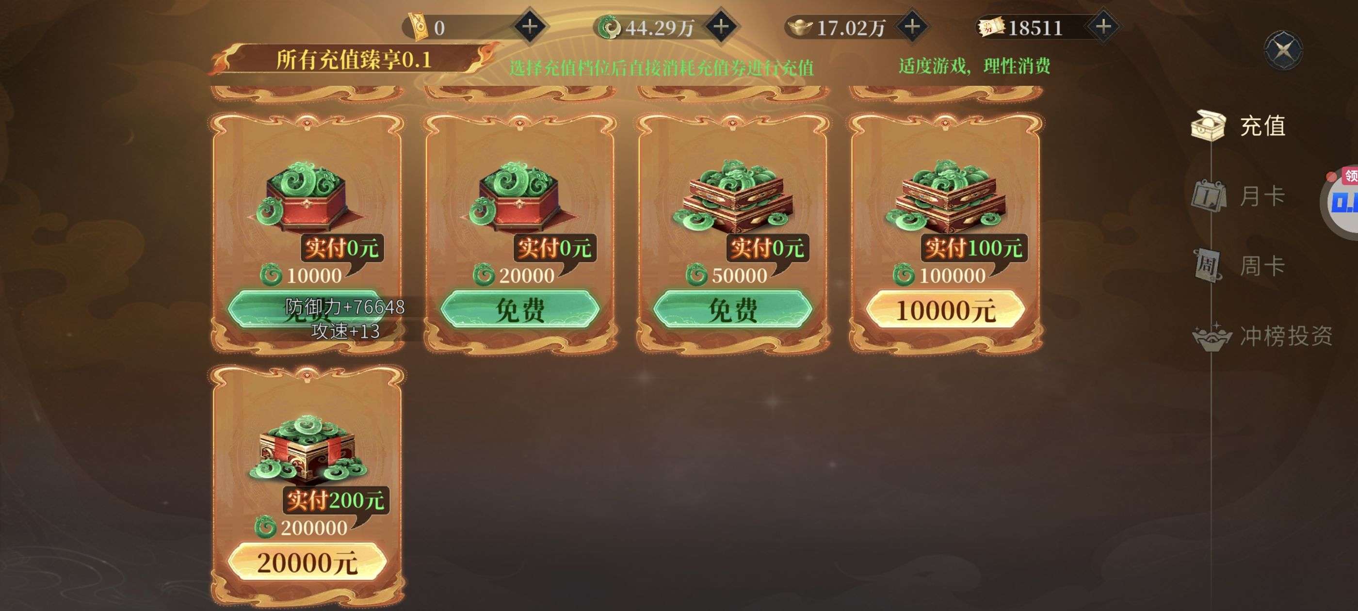 30张648真充卡豪礼、侠客灵丹*10、侠客神丹*10、侠客金丹*1、专属挑战令*1(每个账号限领一次)