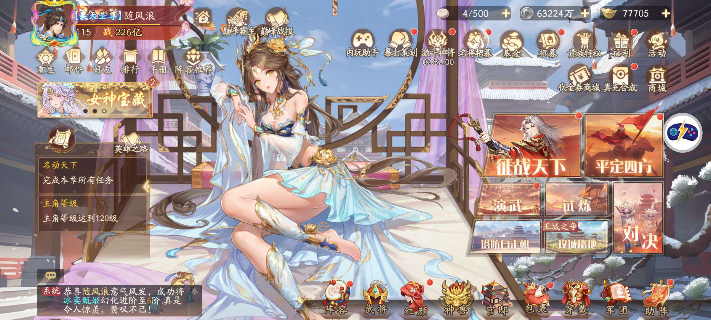 夺宝券*1、比武令*1、5星随机将魂*10(每个账号限领一次)