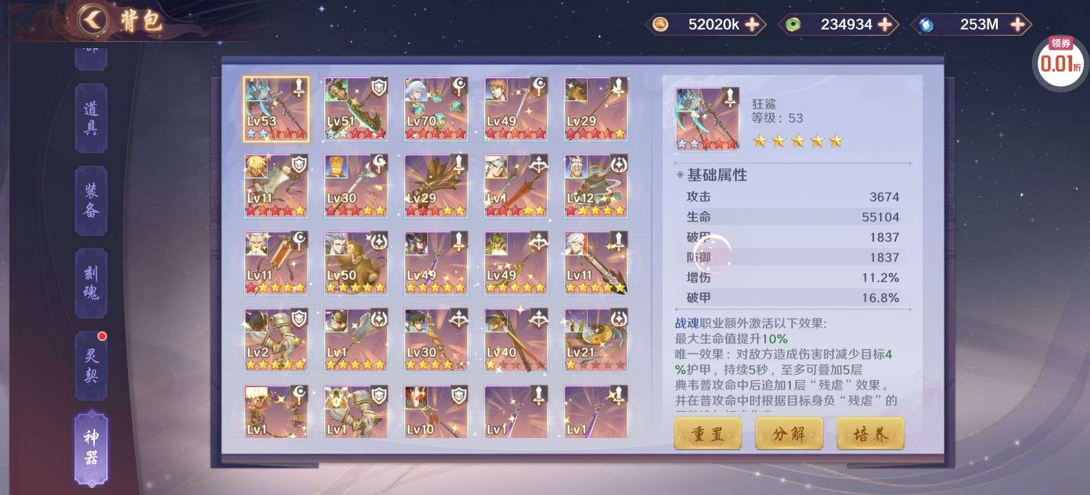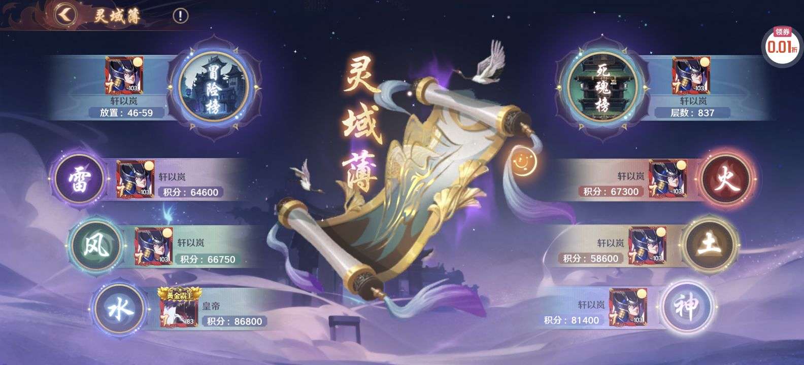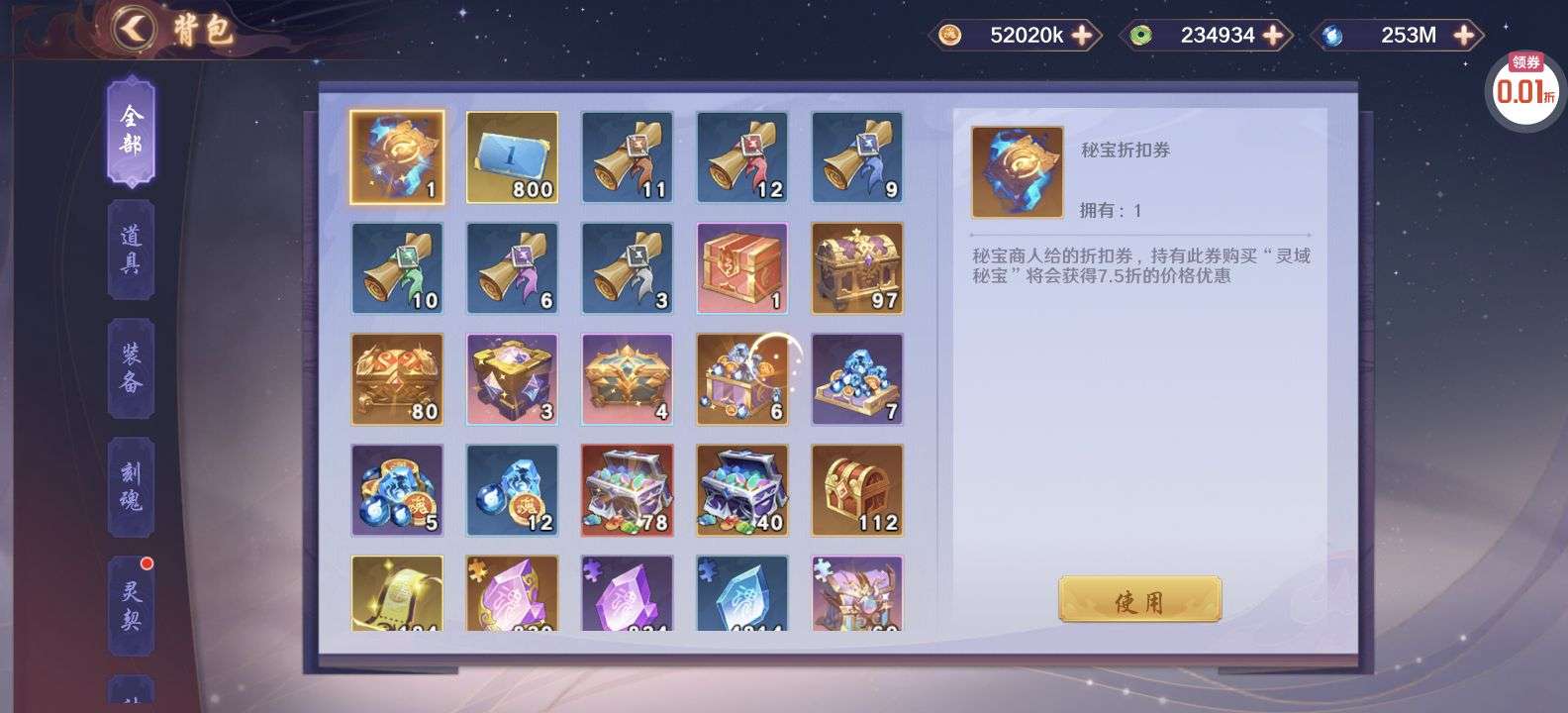 夺宝券*1、比武令*1、5星随机将魂*10(每个账号限领一次)