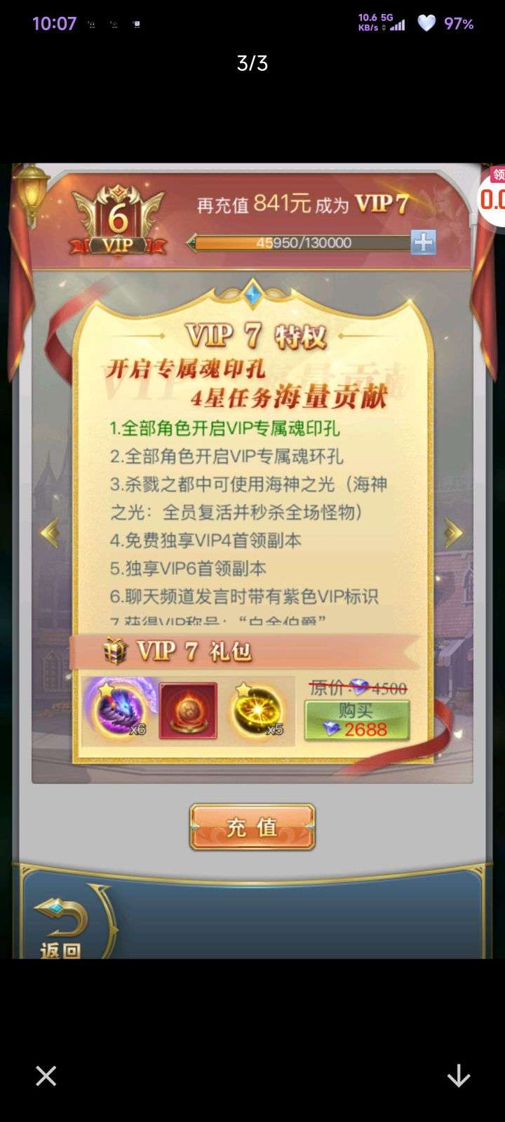 夺宝券*1、比武令*1、5星随机将魂*10(每个账号限领一次)
