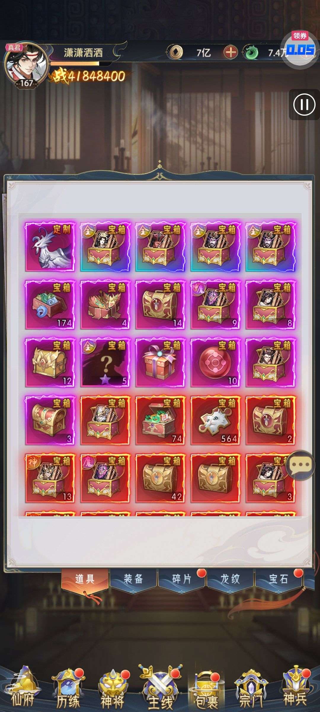 30张648真充卡豪礼、侠客灵丹*10、侠客神丹*10、侠客金丹*1、专属挑战令*1(每个账号限领一次)