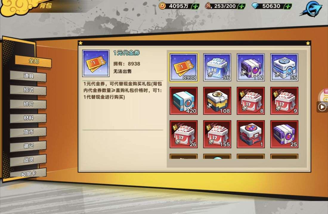 五阵营输出自选包*1、豪华材料自选礼包*2、高级忍法帖*20(每个账号限领一次)