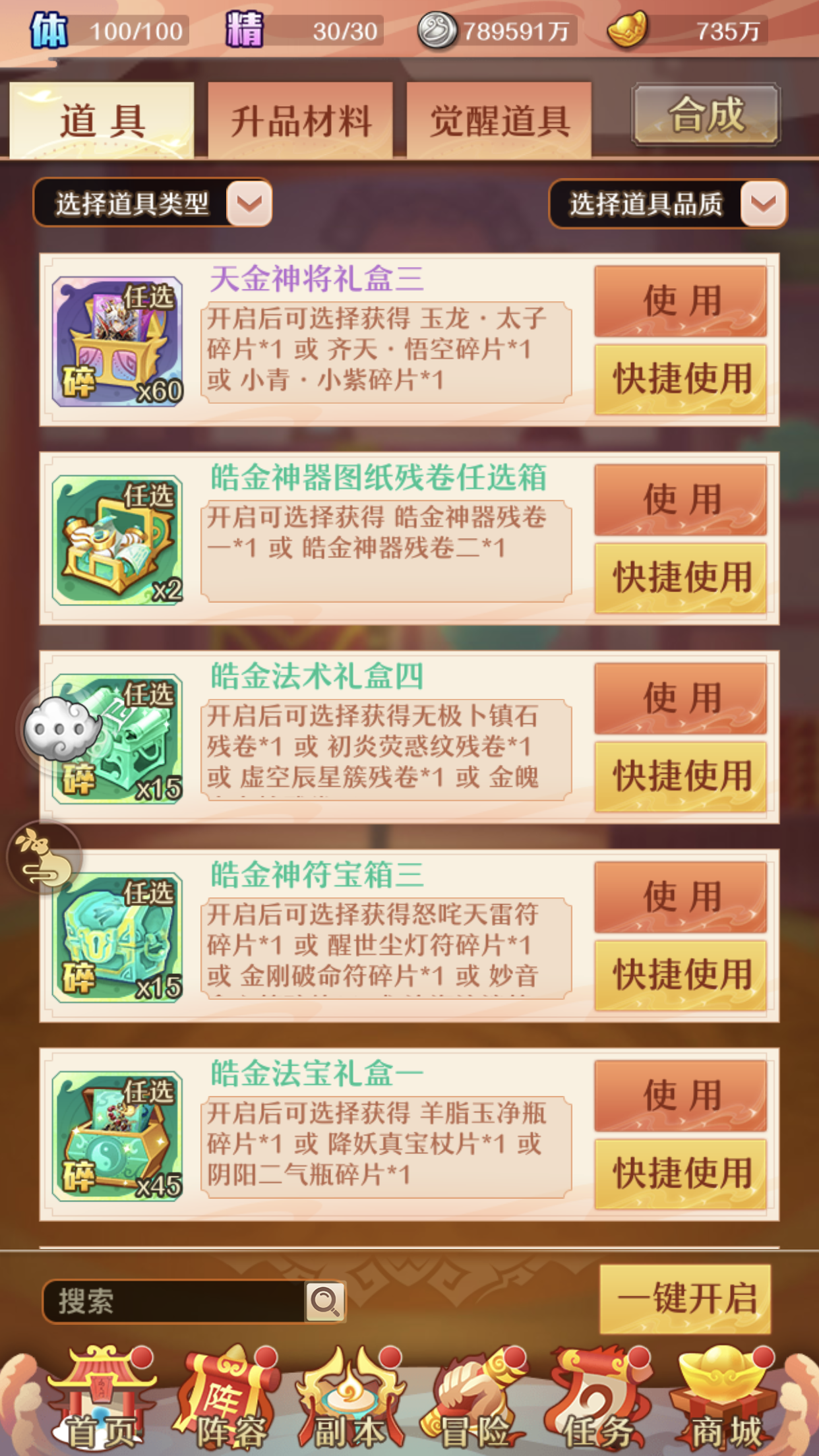 夺宝券*1、比武令*1、5星随机将魂*10(每个账号限领一次)