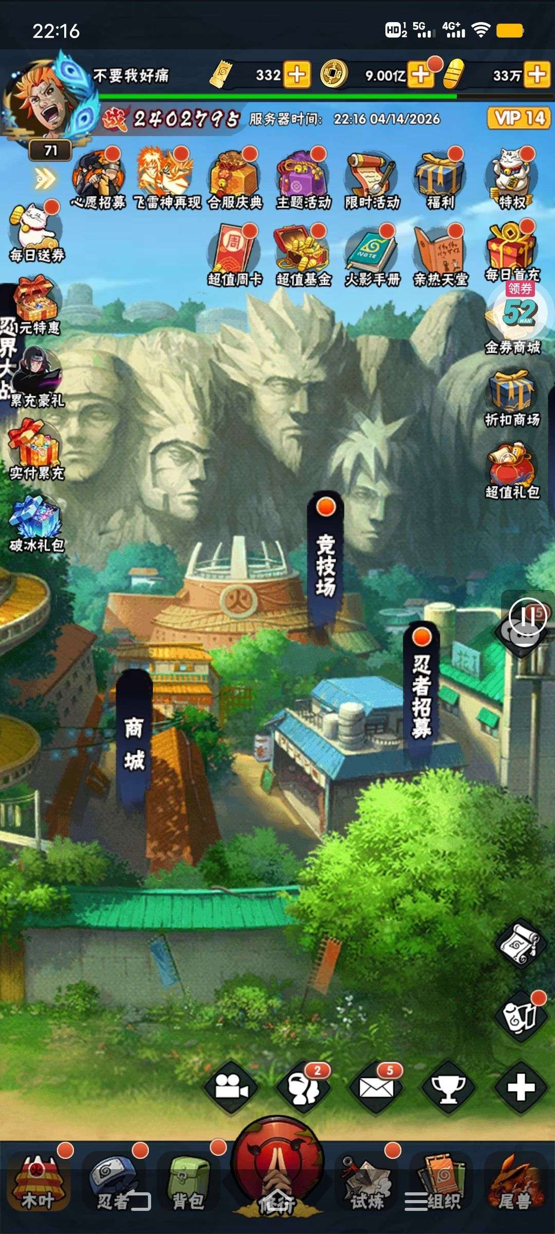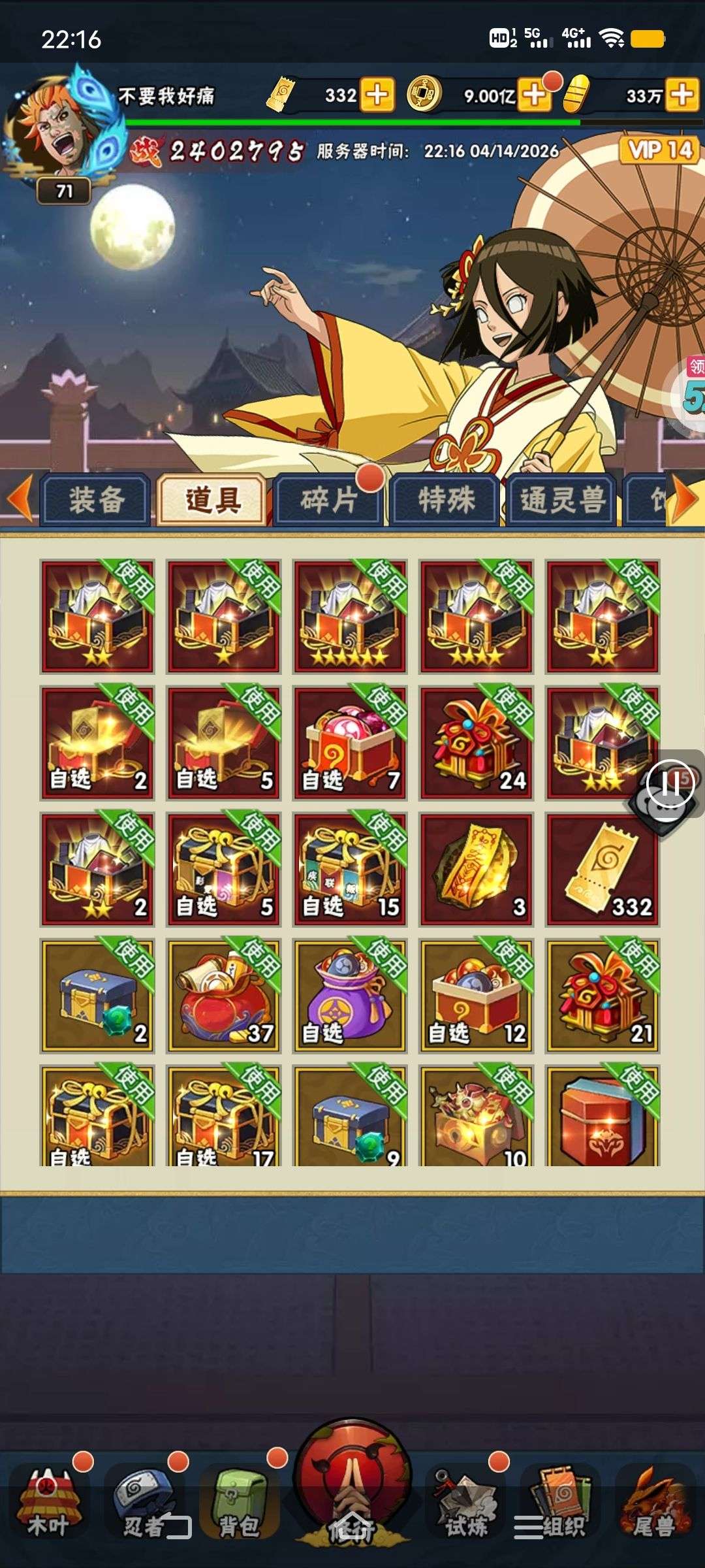 五阵营输出自选包*1、豪华材料自选礼包*2、高级忍法帖*20(每个账号限领一次)