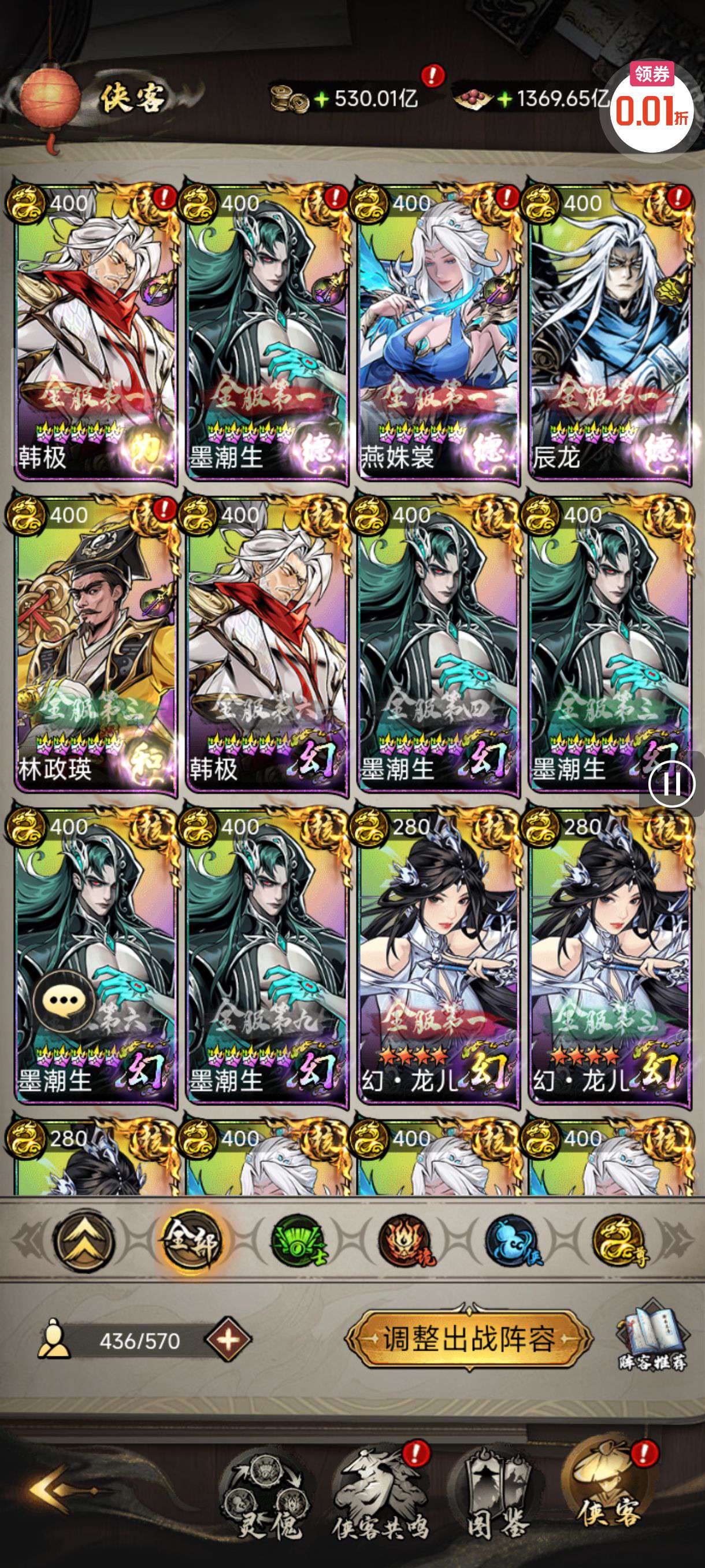 0.1折极品侠客任选