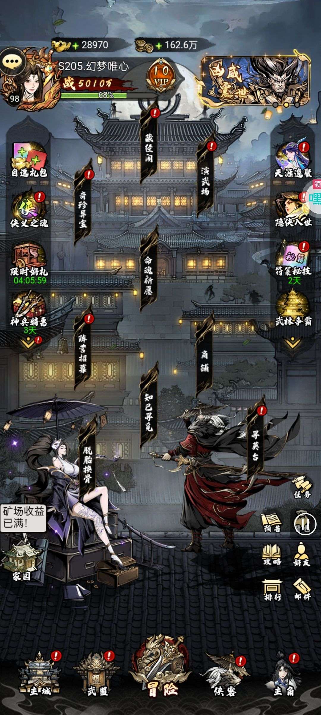 30张648真充卡豪礼、侠客灵丹*10、侠客神丹*10、侠客金丹*1、专属挑战令*1(每个账号限领一次)