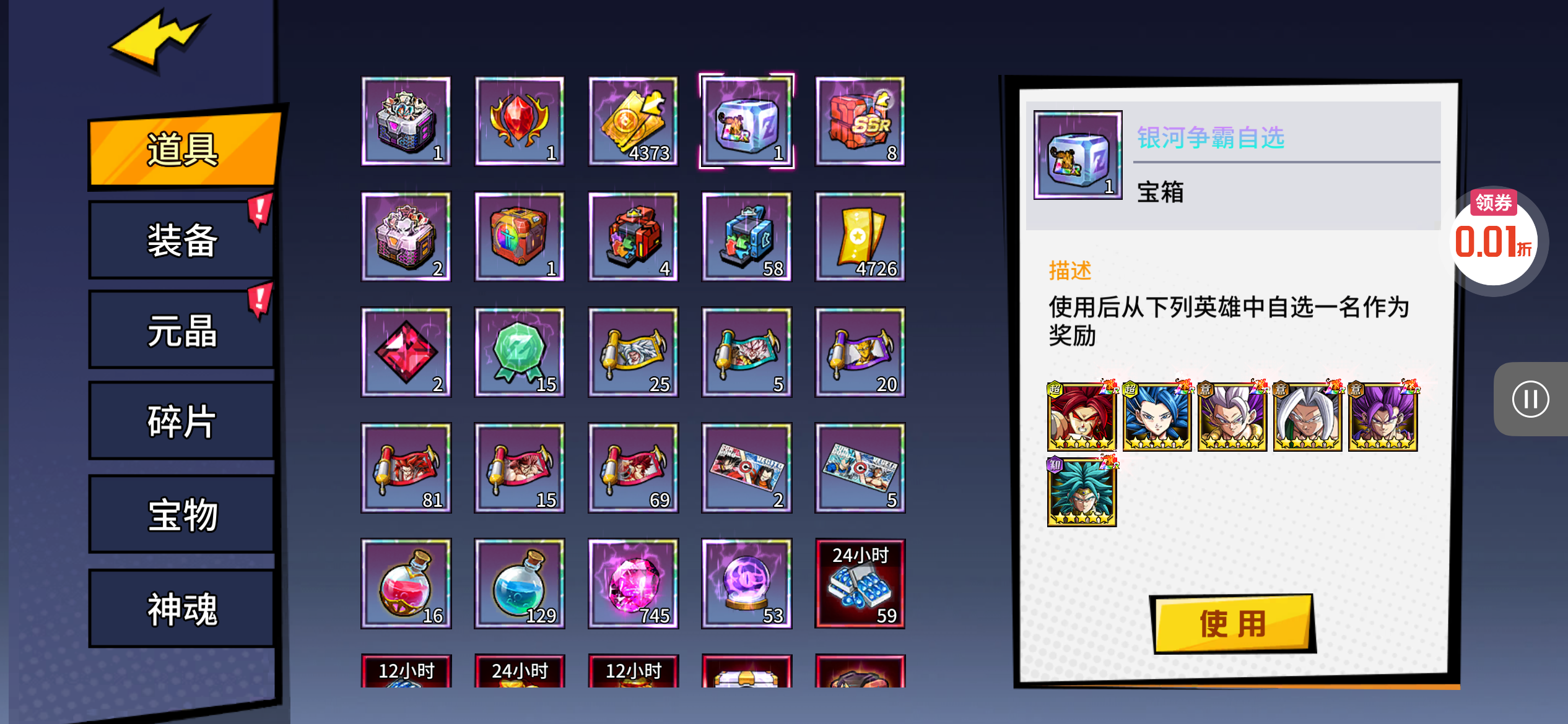 夺宝券*1、比武令*1、5星随机将魂*10(每个账号限领一次)