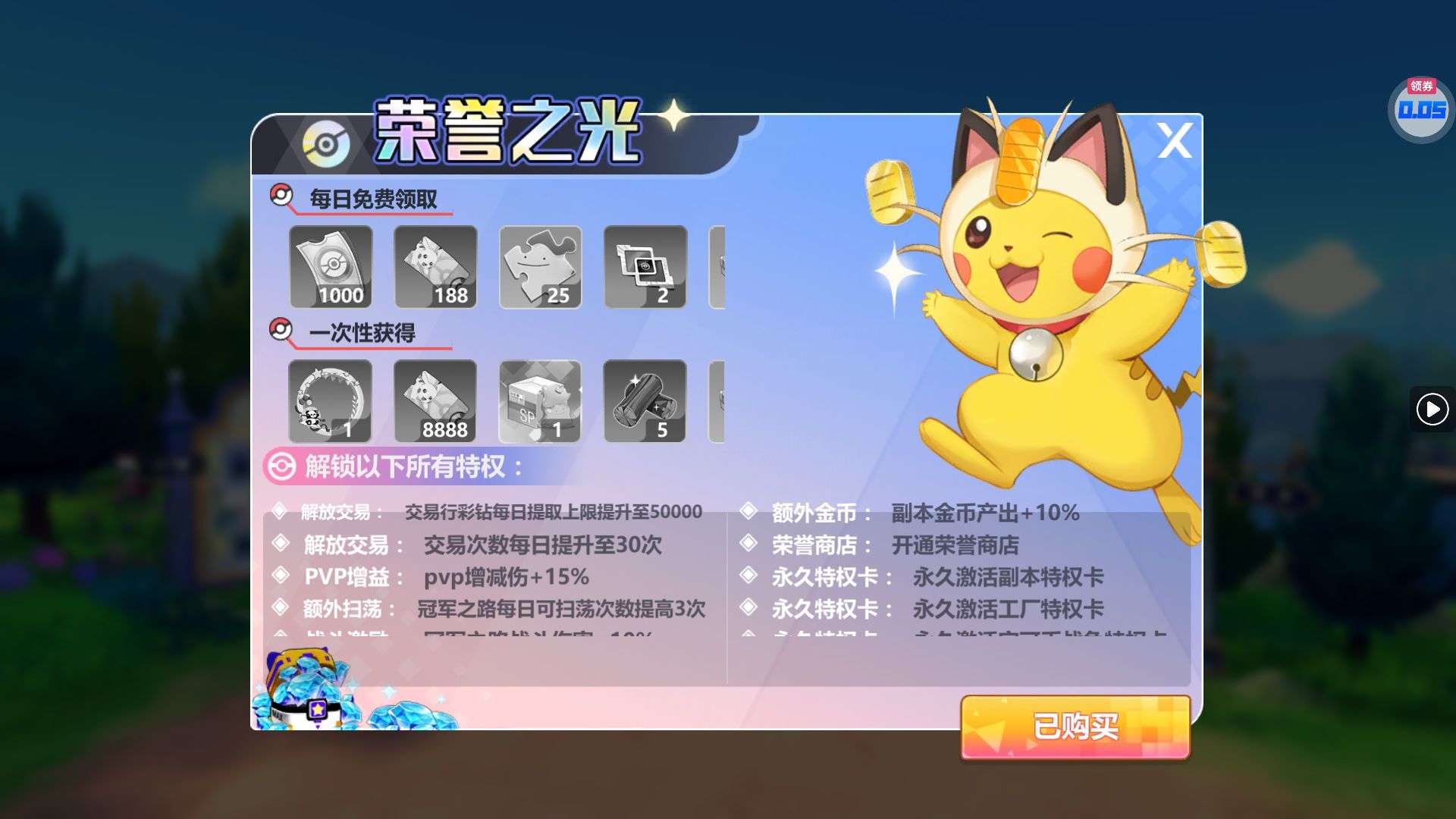 30张648真充卡豪礼、侠客灵丹*10、侠客神丹*10、侠客金丹*1、专属挑战令*1(每个账号限领一次)