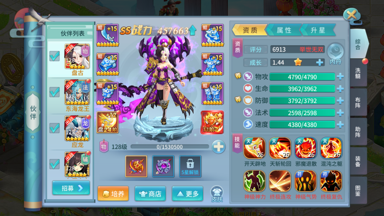 准五星盘古四星昊天,近两百万战力,还有很多资源可以用没空玩了