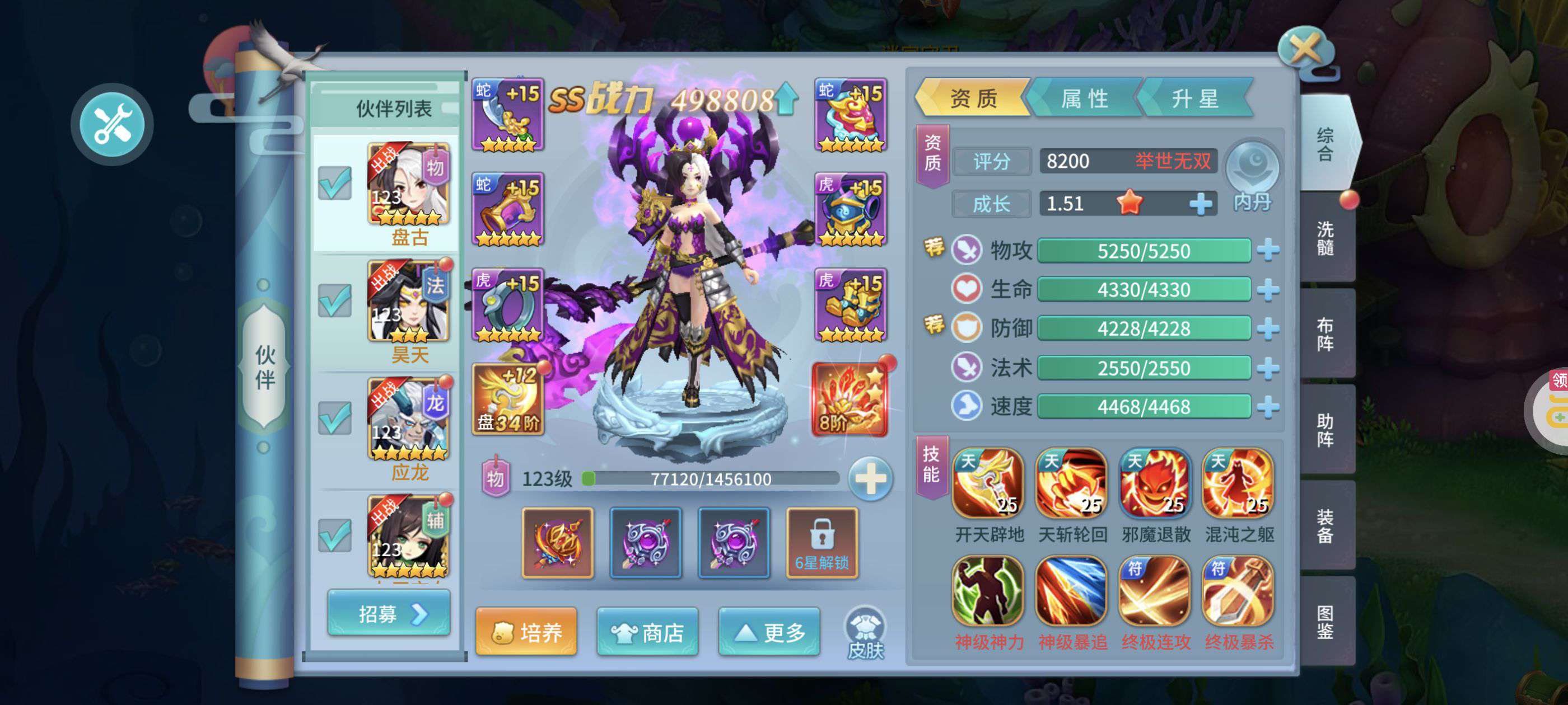 准五星盘古四星昊天,近两百万战力,还有很多资源可以用没空玩了
