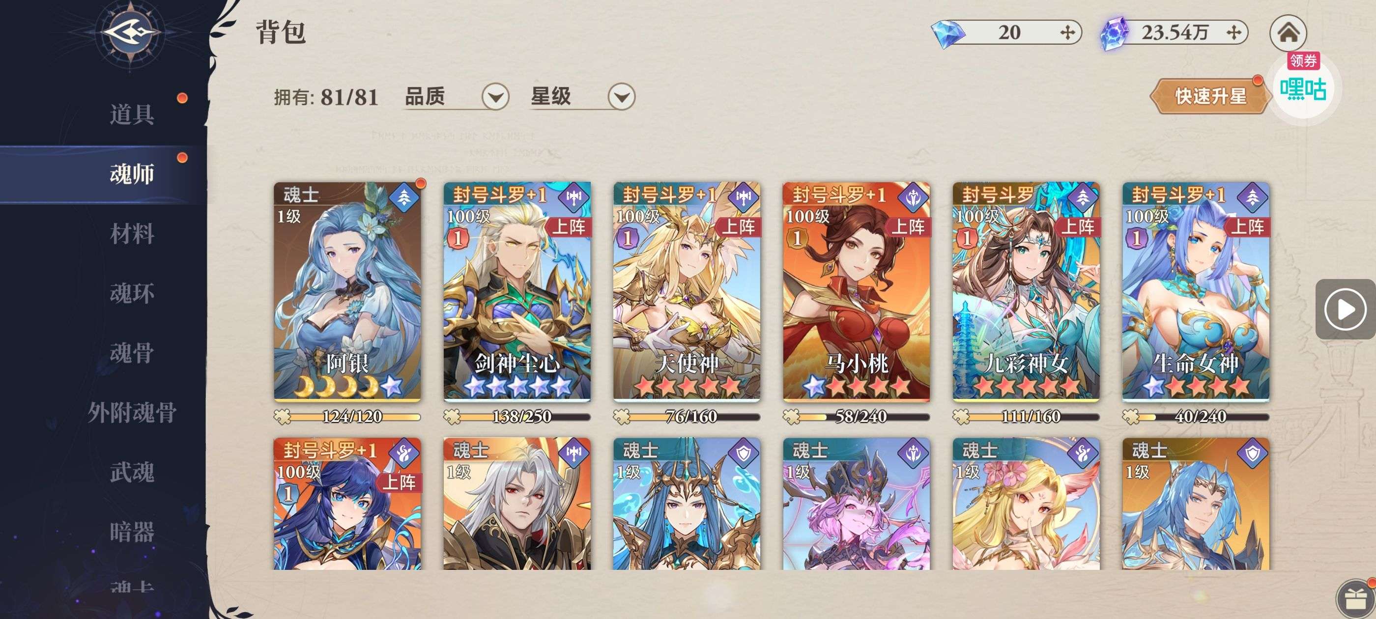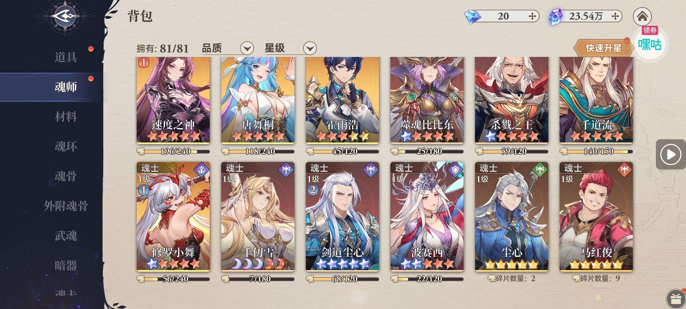 夺宝券*1、比武令*1、5星随机将魂*10(每个账号限领一次)