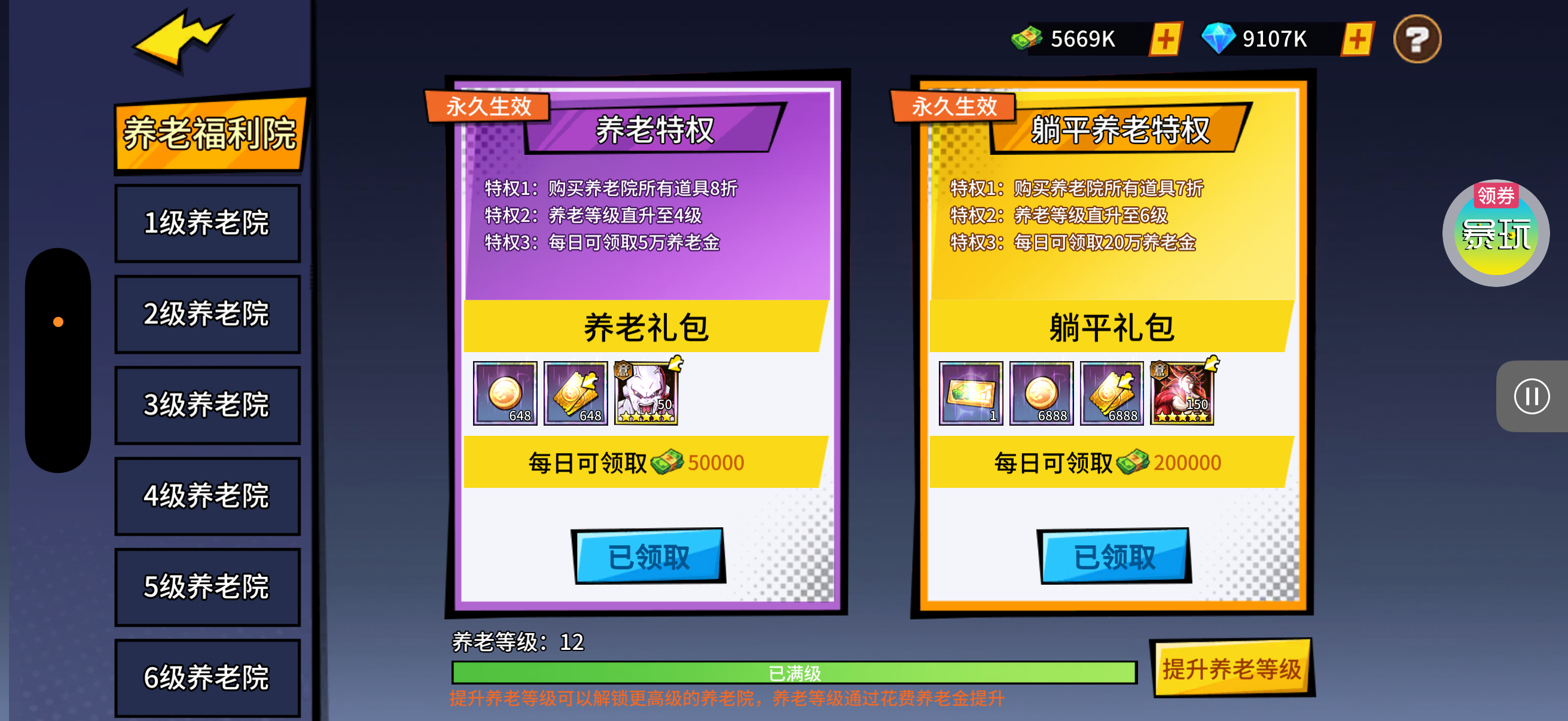 满级养老,无线资源,商店可以直接购买最强红色+的装备。大多数英雄都可以直接用,一套配好的组合和装备,省去了肝的时间,不用充值也能打出爆炸伤害 带一千多超级金券