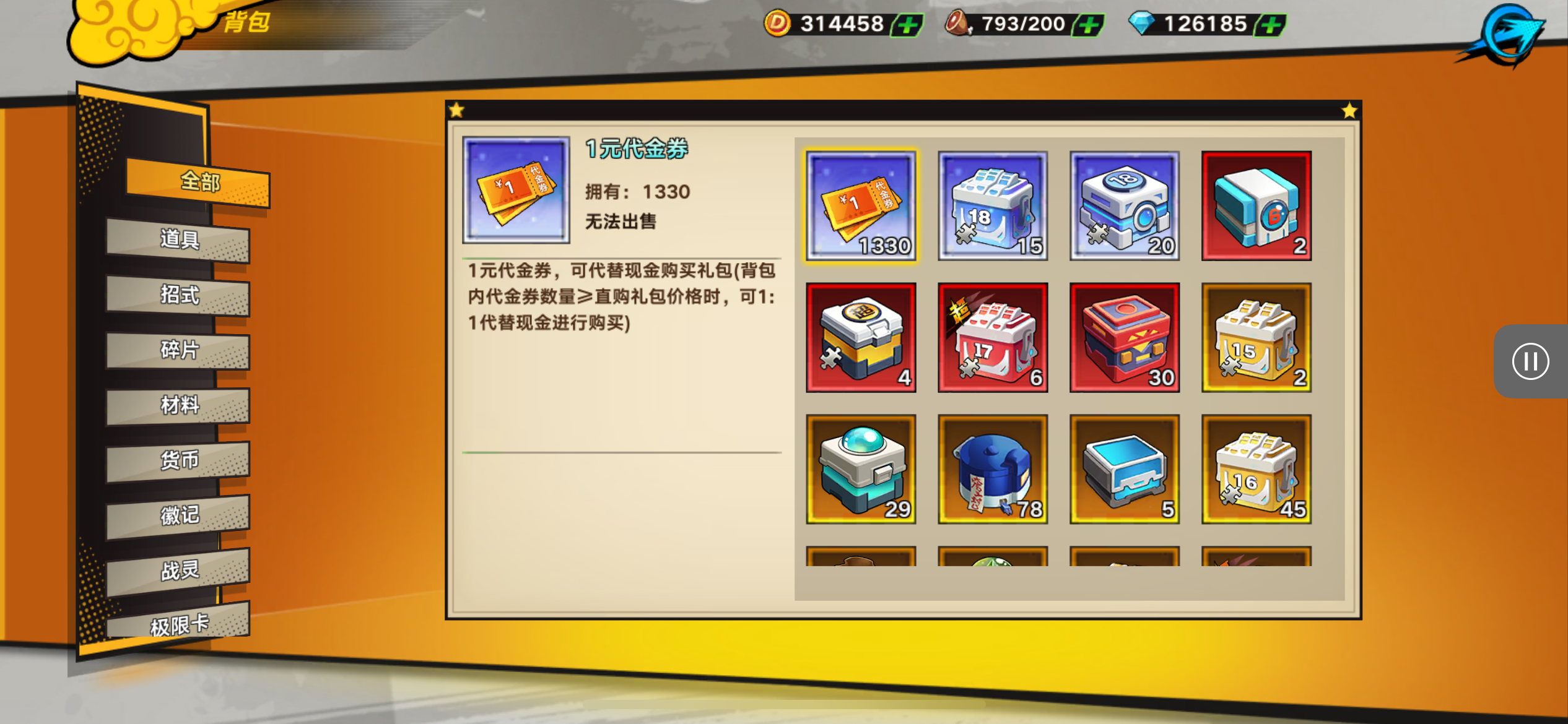 五阵营输出自选包*1、豪华材料自选礼包*2、高级忍法帖*20(每个账号限领一次)