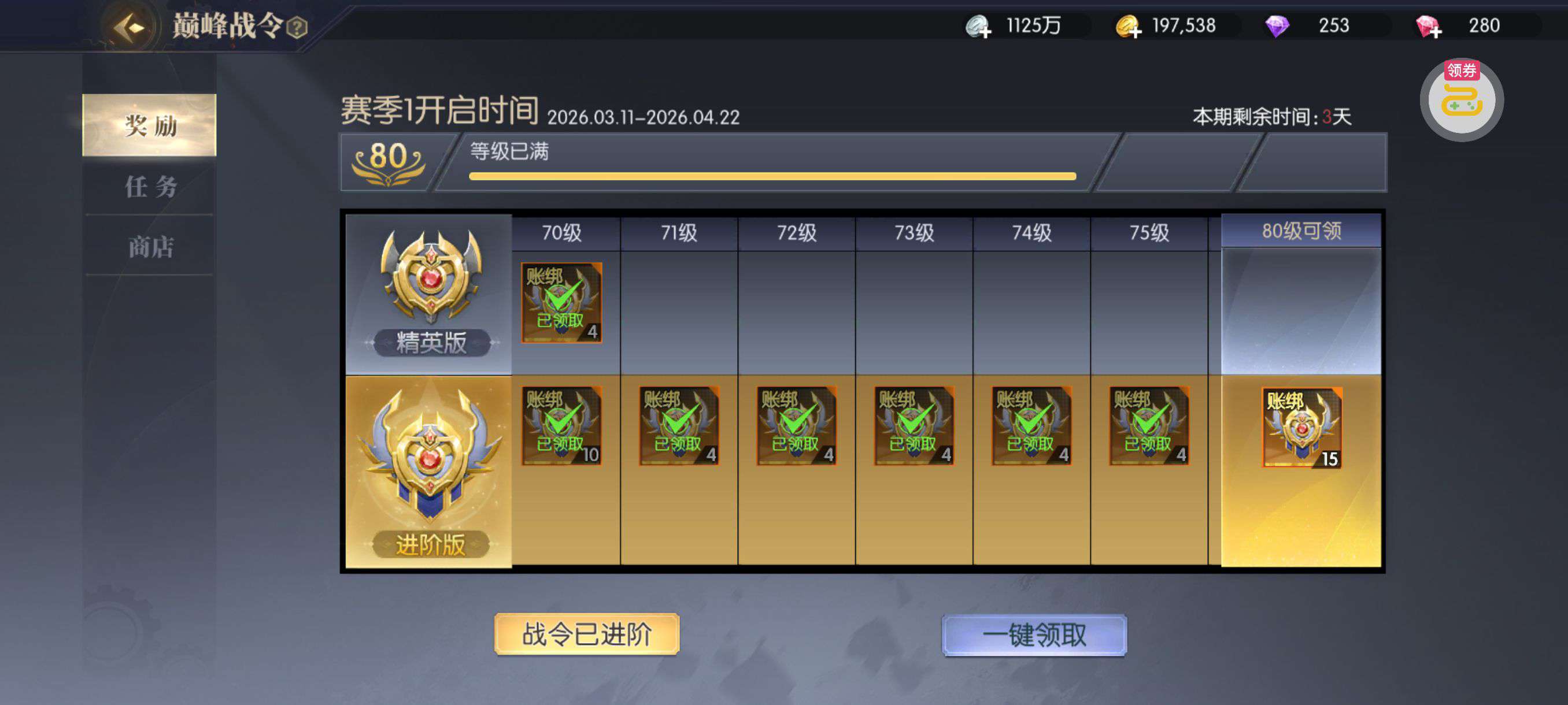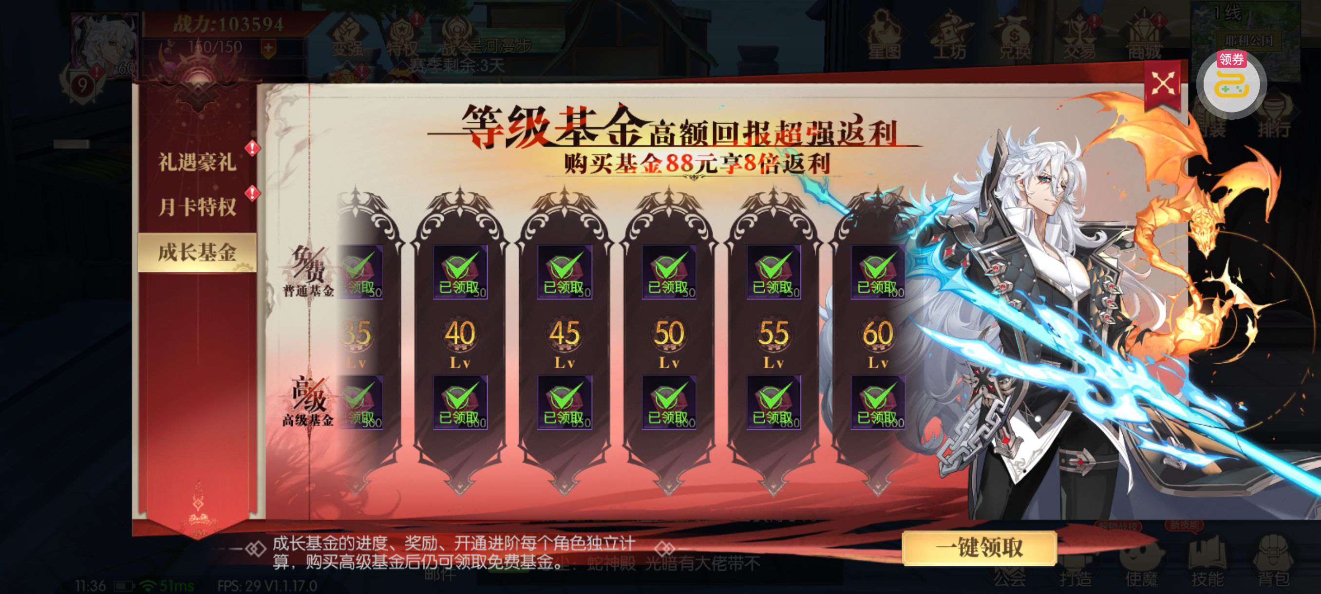 夺宝券*1、比武令*1、5星随机将魂*10(每个账号限领一次)