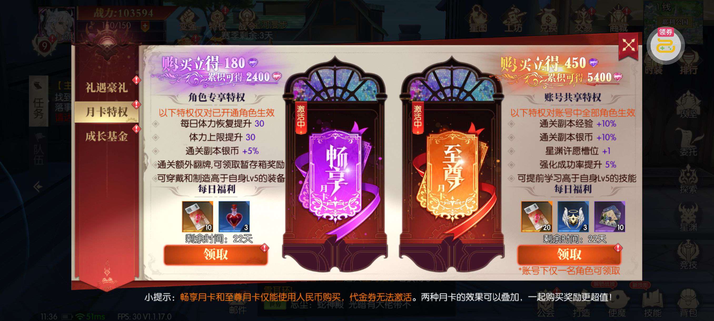 30张648真充卡豪礼、侠客灵丹*10、侠客神丹*10、侠客金丹*1、专属挑战令*1(每个账号限领一次)