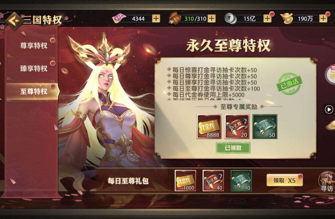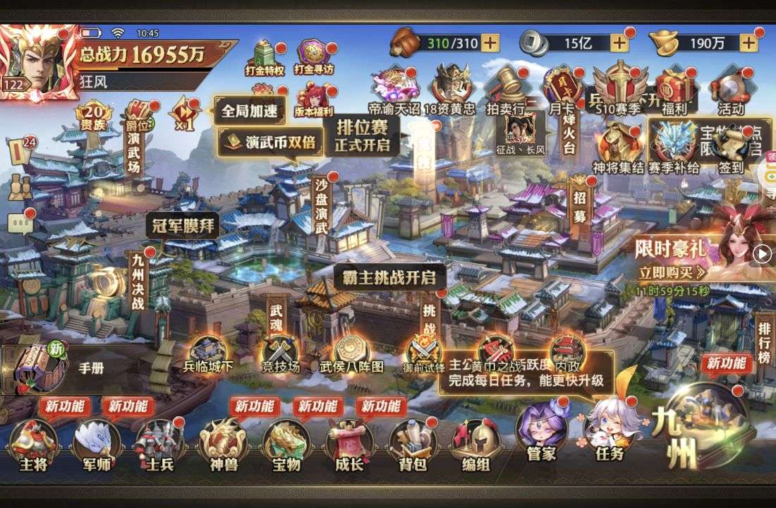 夺宝券*1、比武令*1、5星随机将魂*10(每个账号限领一次)